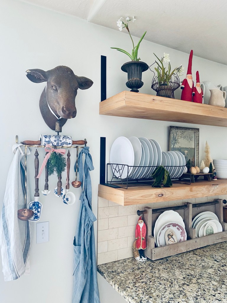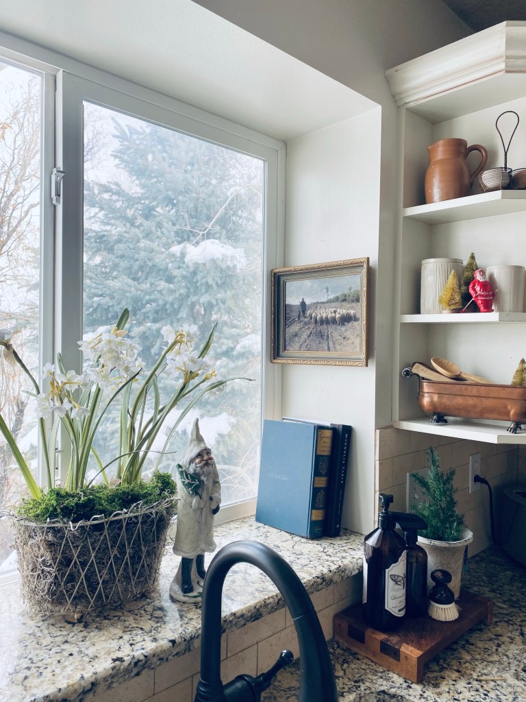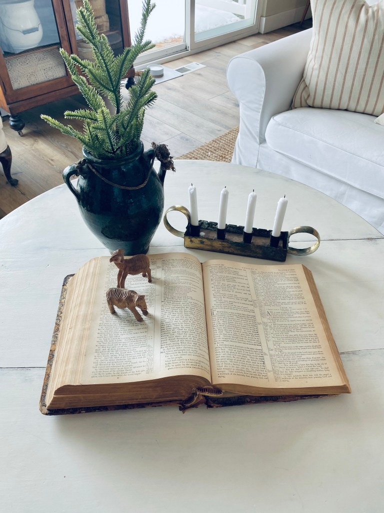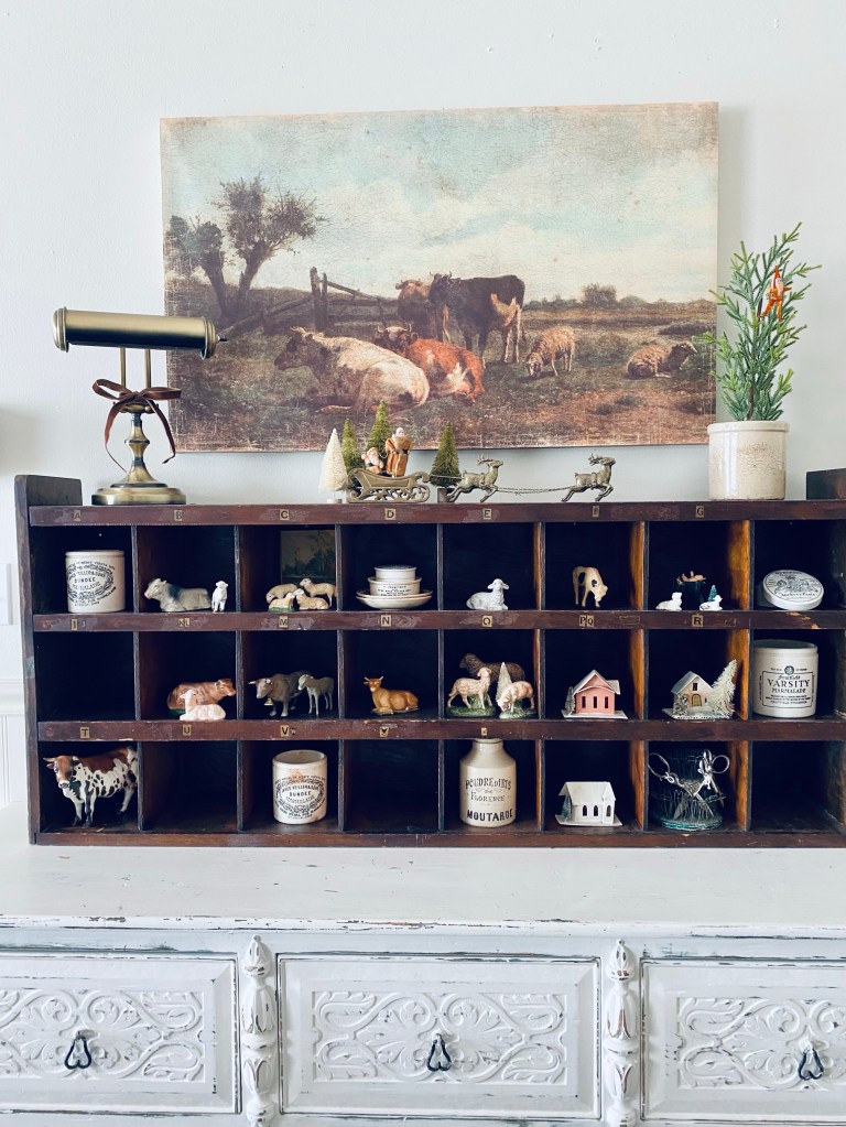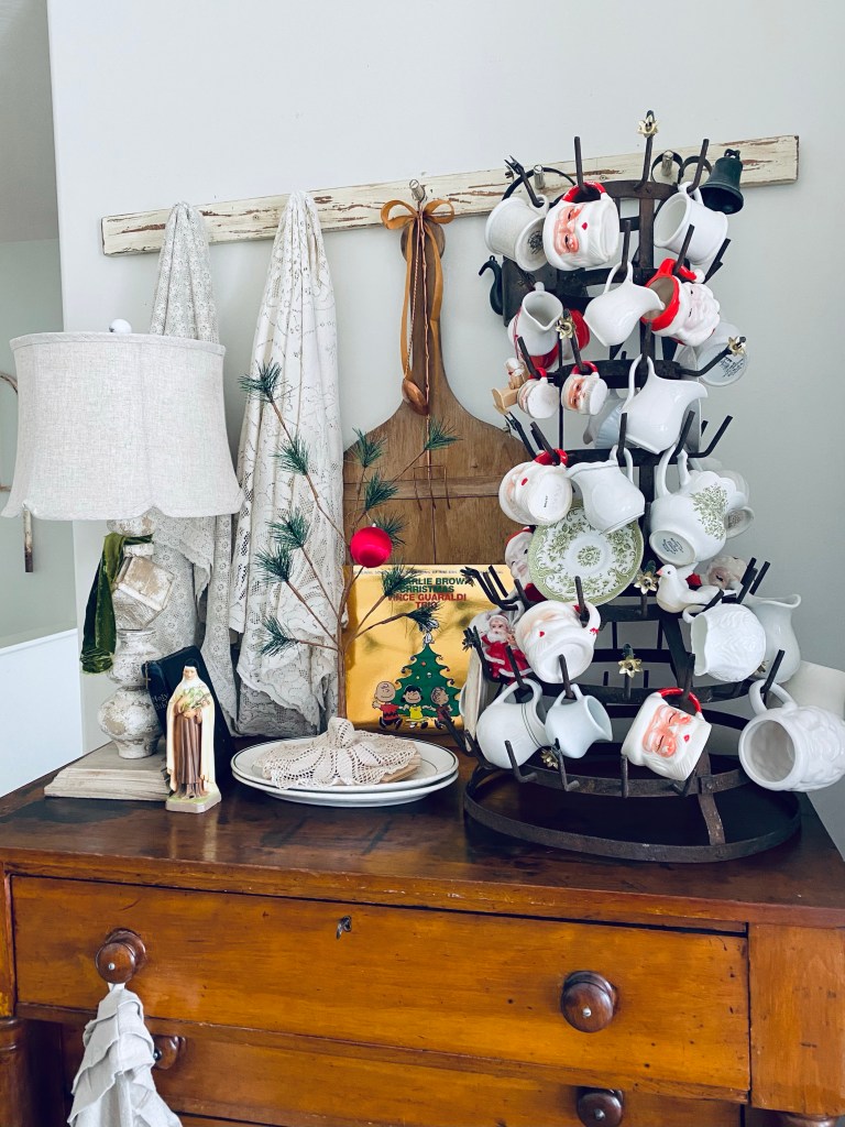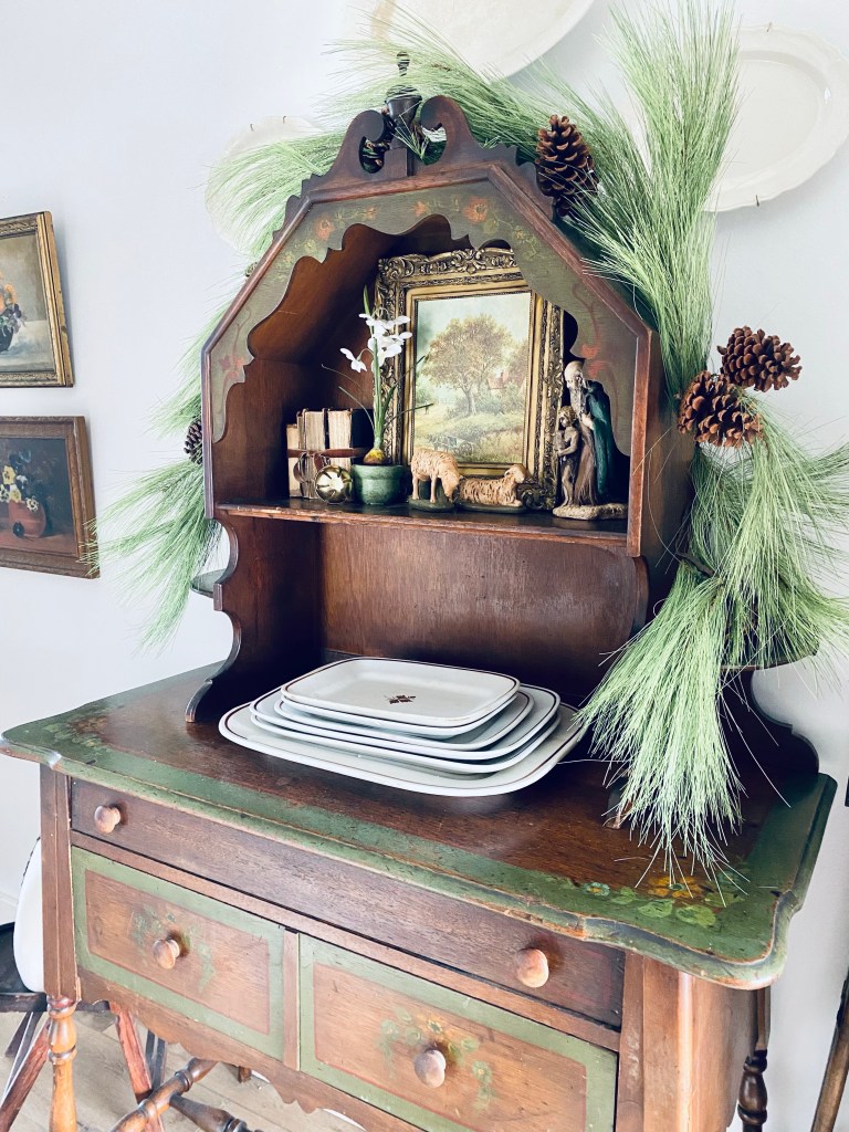 Well Christmas decor is up 🌲🎅🏻❤️ I have started putting less out every year… it’s feels less cluttered and peaceful #christmasdecor #christmas #downsizing #babyjesus #lessismore #thrifted #familypieces #vintagechristmas #handmedowncottage #furnitureattiffanys