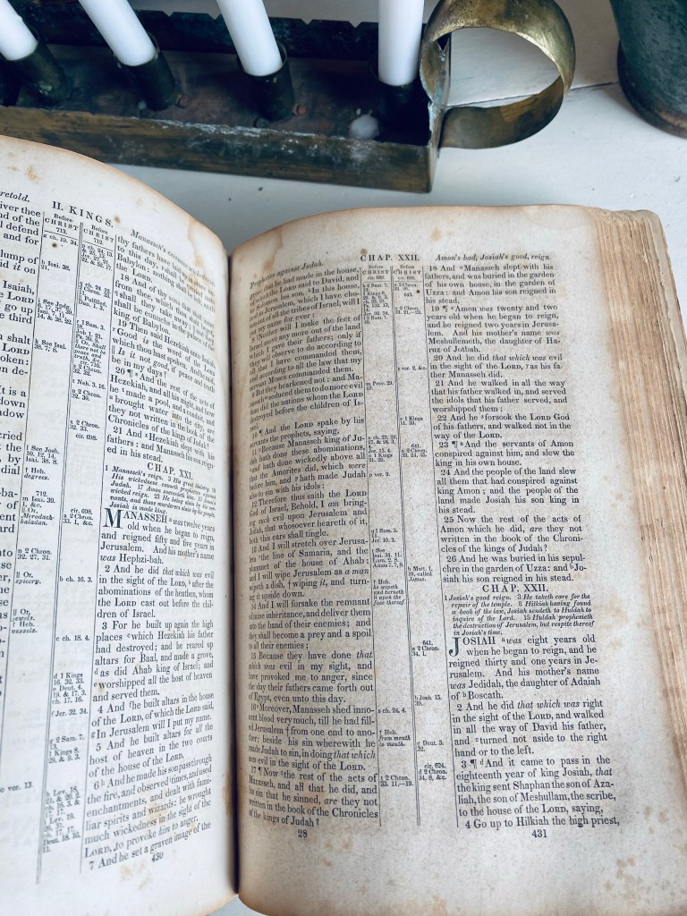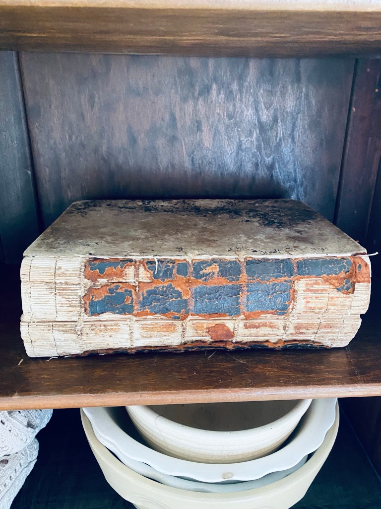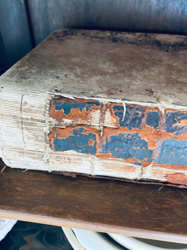 I have been obsessed with old Bibles lately… and this one I found on marketplace certainly fit the bill! Shes from 1850 🤍 Isn’t she a beauty? #antiquebible #old #tattered #torn #beautiful #used #bible #1850 #antique #marketplace #handmedowncottage #furnitureattiffanys