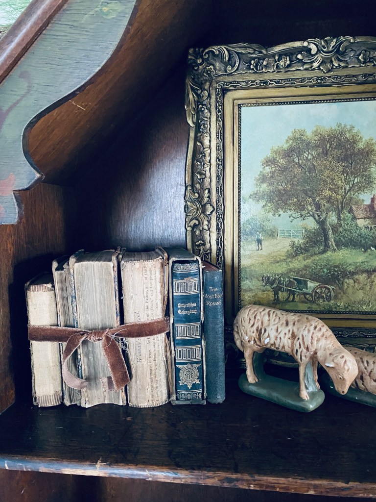 Small antique books have my heart ❤️ #antiquebooks #oldbooks #catholic #catholicbooks #collection #religiousbooks #antique #antiques #handmedowncottage #furnitureattiffanys