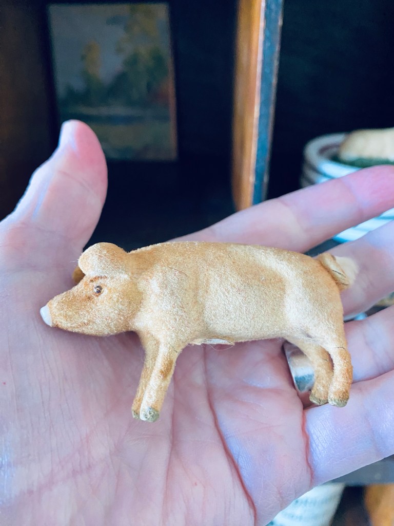 Apparently I collect Putz pigs now 🐖🩷 How sweet is this little guy? #putz #pig #old #tiny #newcollection #lovehim #farmhouse #putz #putzanimals #german #handmedowncottage #furnitureattiffanys