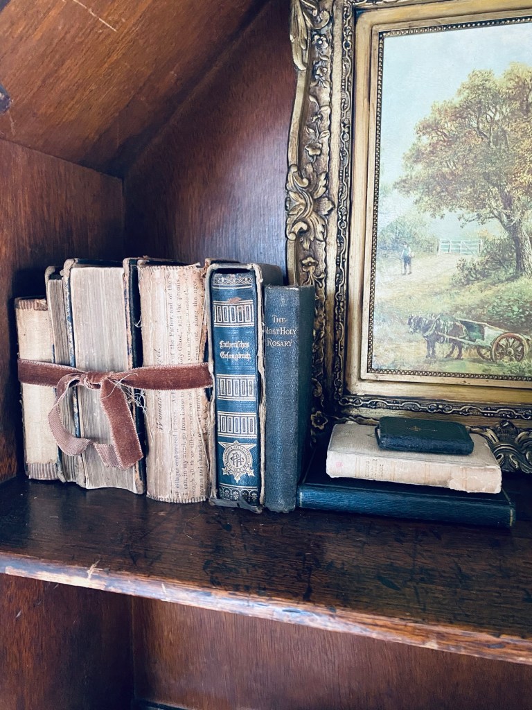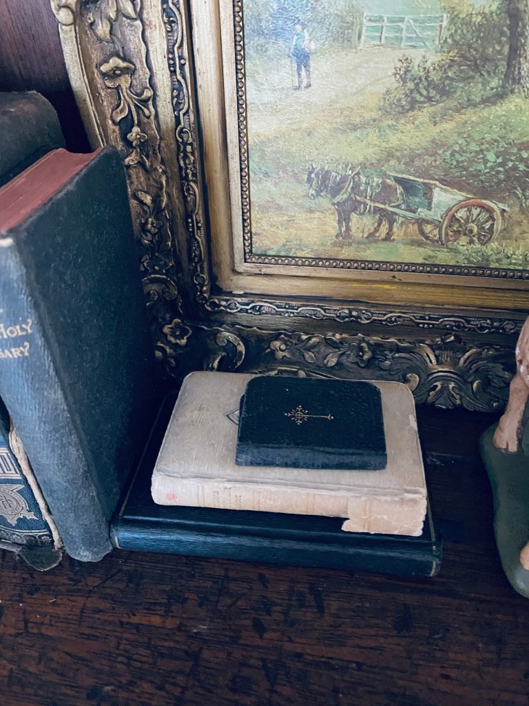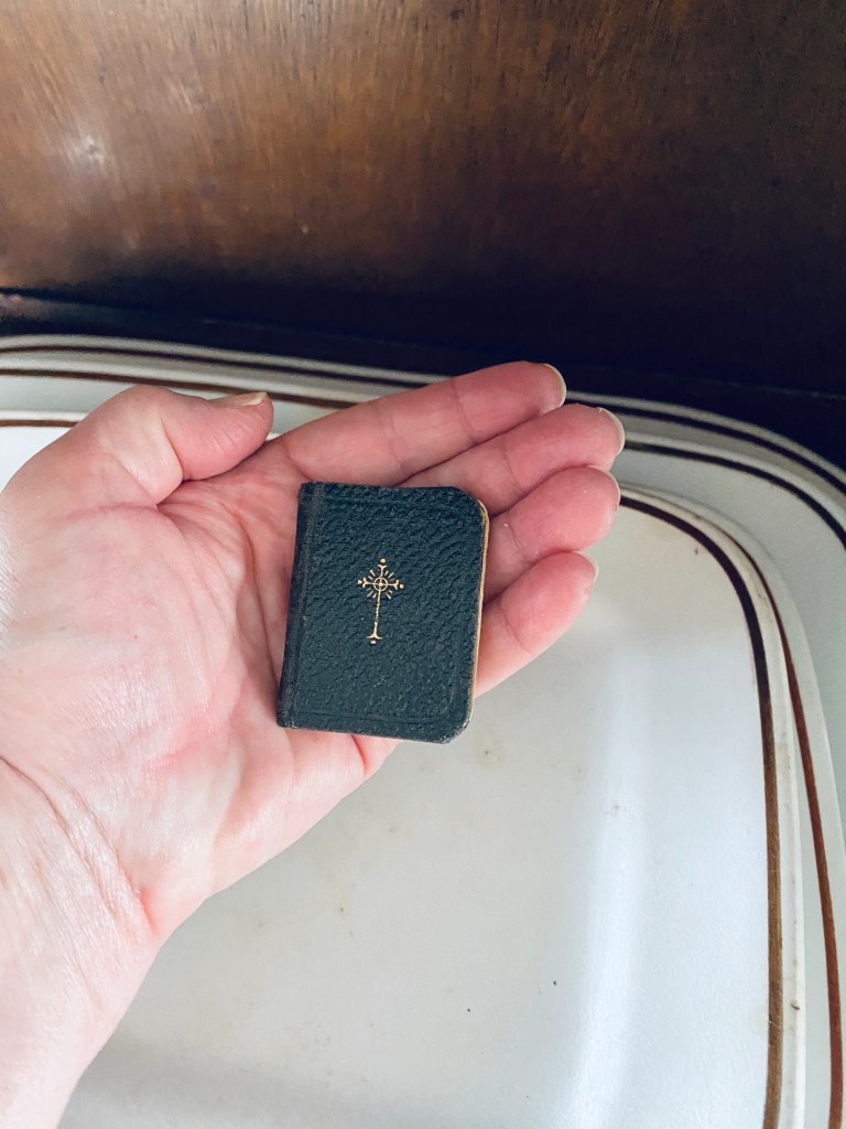 Found a few little beauties to add to my antique religious book collection 🤍That tiny one though 🥹 #antiquebooks #religous #catholic #lovethem #collection #prayerbook #tiny #handmedowncottage #furnitureattiffanys