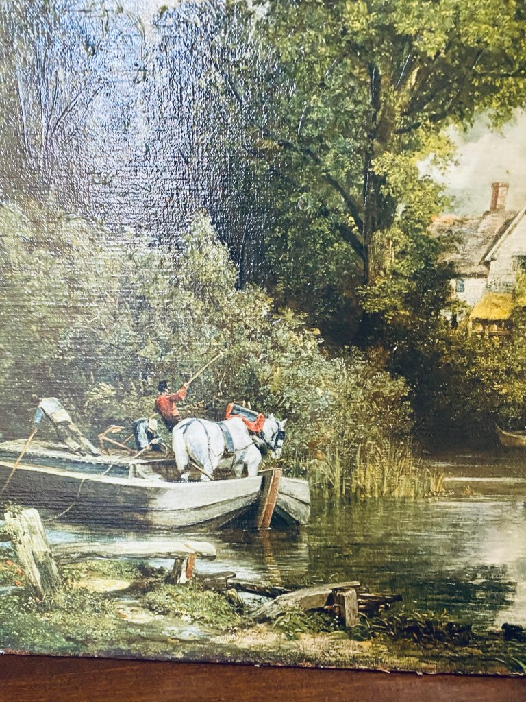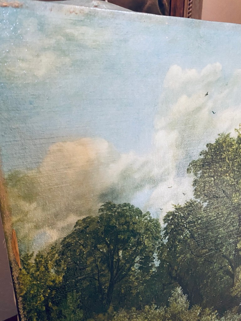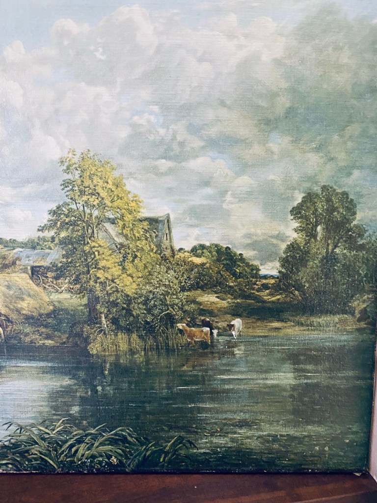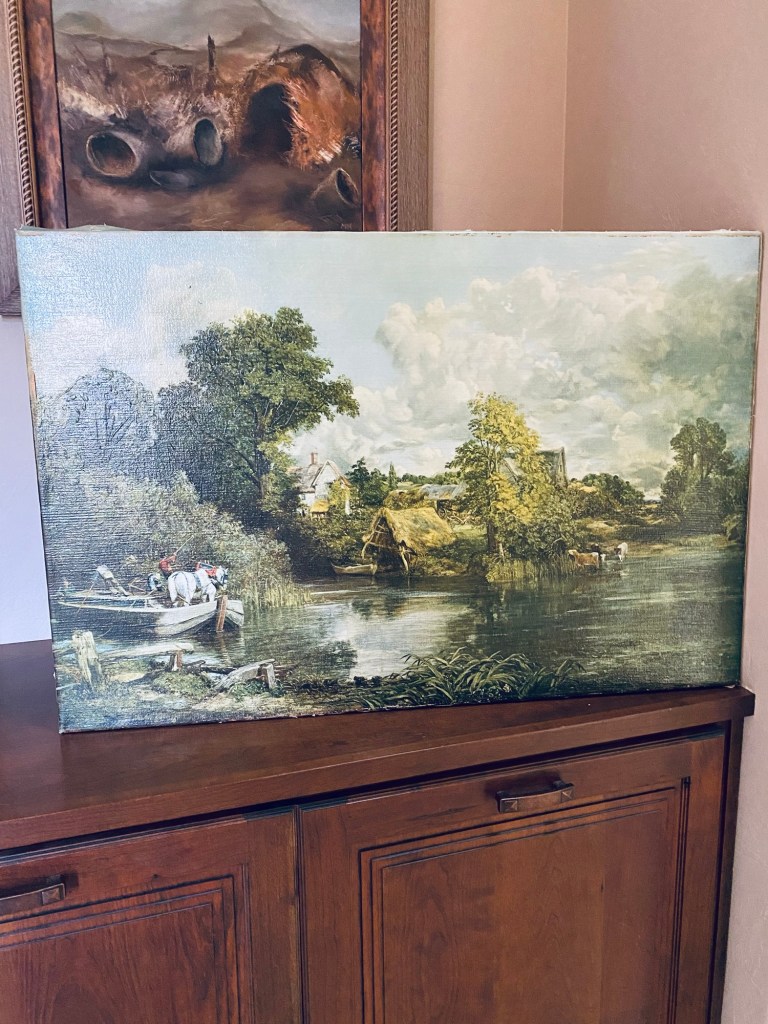 I found this old print on canvas today at #deseretindustries It looks so much like a real painting! I did some research and the original is in a museum in NYC 🤍 It’s called “The White Horse” painted by John Constable in 1819. Ohhh the things we find thrifting! #art #antiqueprint #landscape #old #thrifted #handmedowncottage #furnitureattiffanys