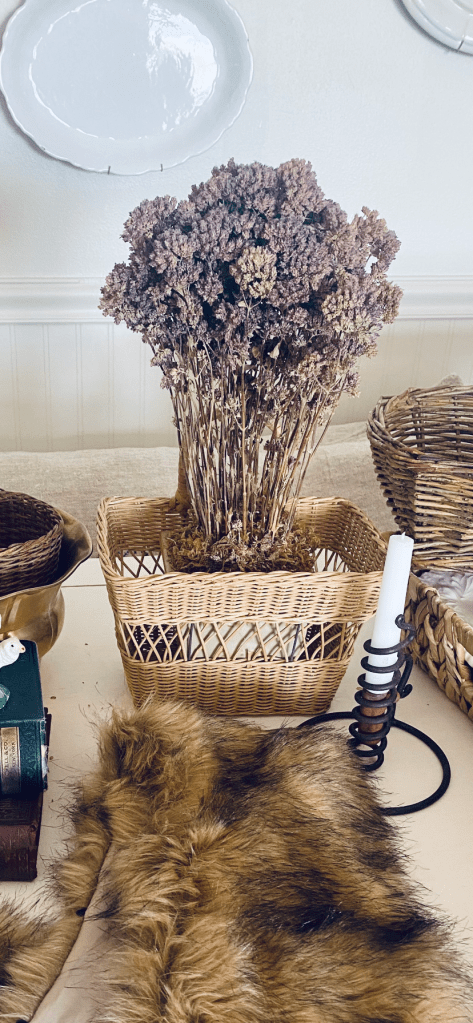 Thrifted vs styled 🤍 These dried flowers looked so sad on the self at @deseret_industries but I knew they had potential! Dried flowers are pricey, and these were $2! What do you think? Do you pick up florals at the thrift? #thriftedvsstyled #thrifted #driedflowers #ironstone #vignette #vintage #winterflorals #handmedowncottage #furnitureattiffanys