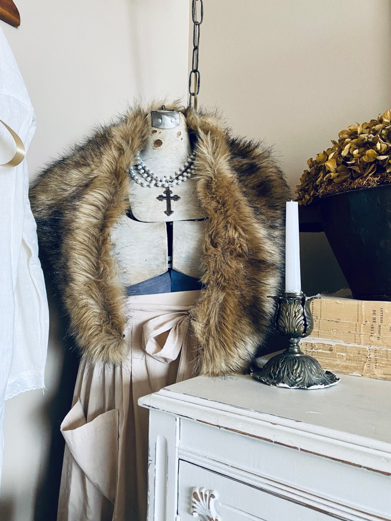 I found Melba~LaRue a faux mink stole at the thrift the other day… she looks fabulous in it 🤍 #thrifted #dressmannequin #vintage #minkstole #vintage #antique #fabulous #happyfriday #thriftstorefinds #handmedowncottage #furnitureattiffanys