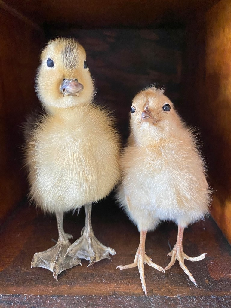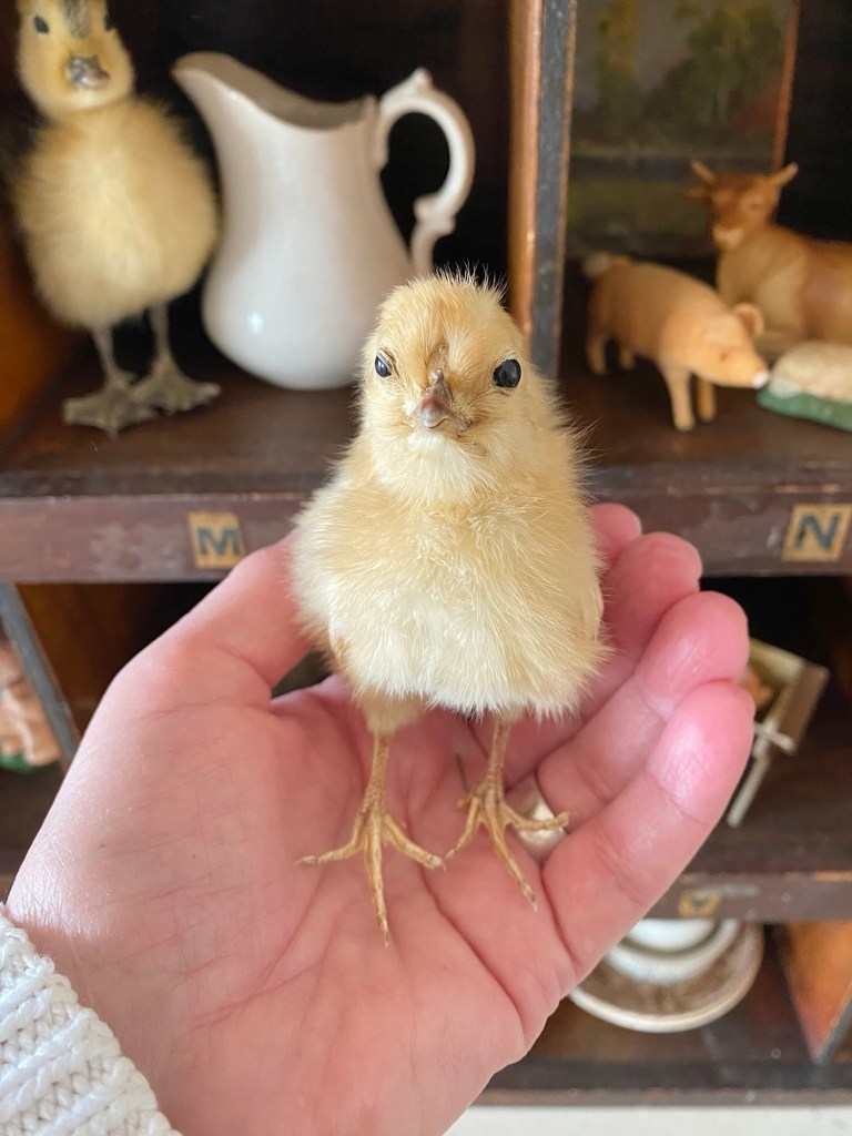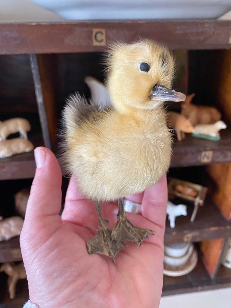 These little fellows have moved in… I was assured they died of natural causes before they were stuffed 🤍 what should we name them? 🐥🦆 🤍 #etsyfinds #taxidermy #chick #duck #babies #spring #readyforeaster #handmedowncottage #furnitureattiffanys