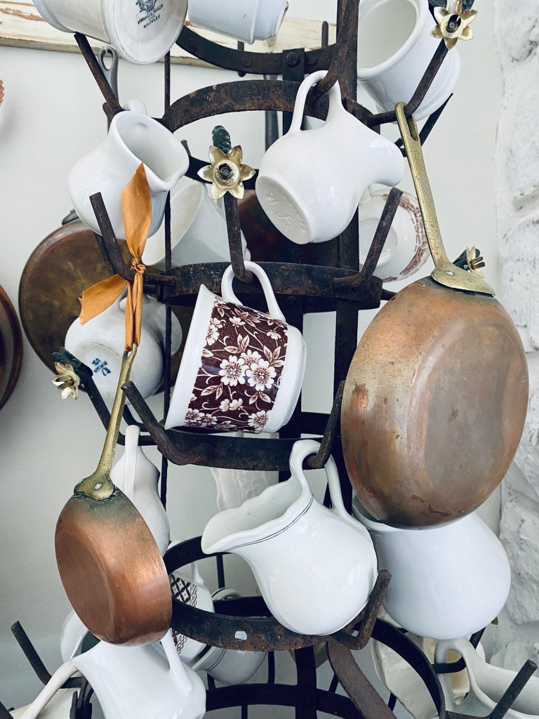 Happy Monday! Monday is kind of a reset day for me… laundry and cleaning after a weekend of putting those things off 😅 I hung these sweet little copper/brass pans I found on #marketplace last week. Aren’t they darling? #monday #reset #copper #vintage #pans #cleaning #laundry #mondaychores #handmedowncottage #furnitureattiffanys
