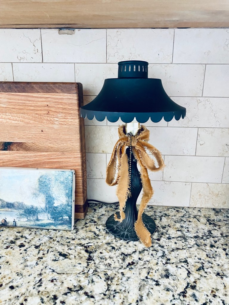 My sweet little lamp I got from @hobnob.market.utah yesterday 🤍 #lamp #vintage #little #styled #kitchenlight #kitchen #homedecor #trade #handmedowncottage #furnitureattiffanys