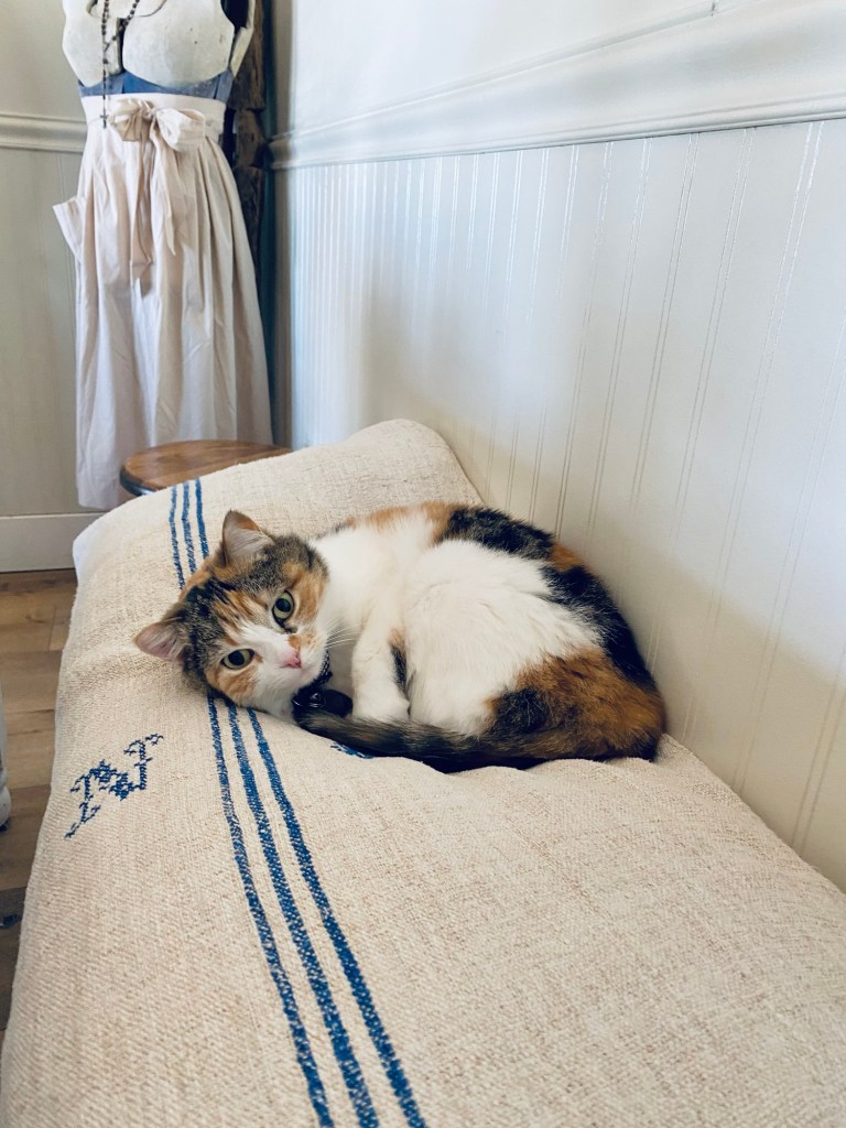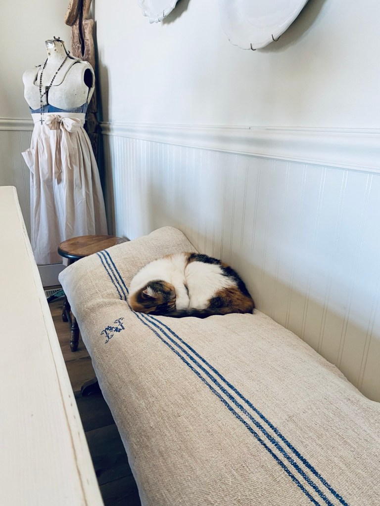 I donโt think she was too thrilled that I woke her ๐ ๐ค Happy Tuesday! #steviethegirlkitty #cats #catnap #morning #handmedowncottage #furnitureattiffanys