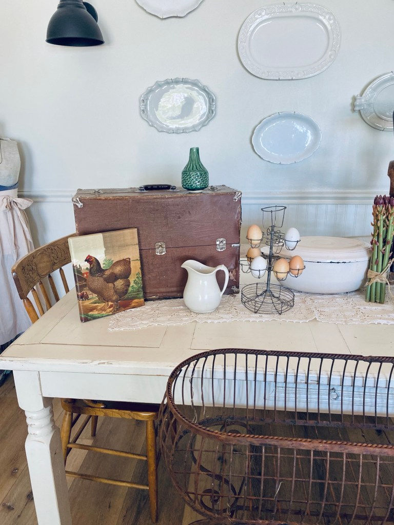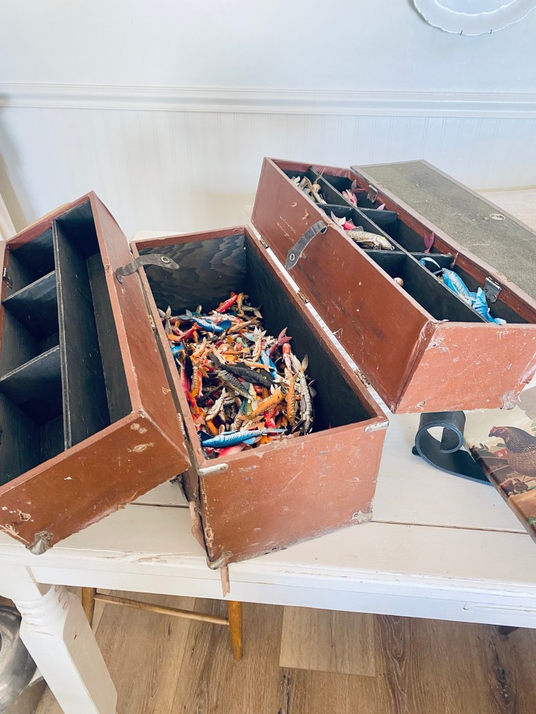 Todays finds 🤍 What would be your fav? Mine is the little antique child’s rocker 🥹🤍 #thrift #thriftstorefinds #antiques #vintage #vintagetacklebox #ironstone #handmedowncottage #furnitureattiffanys