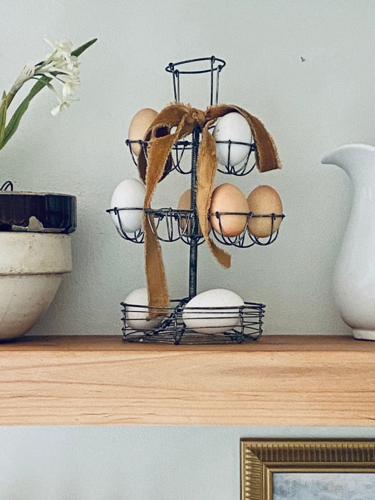 My sweet friend @simplysheridans and I made a little trade last week and this is one of the items I got 🤍 She posted about it quite a while ago, and I’ve loved it ever since! Now it’s mine! Thanks @simplysheridansales 🤍 #frenchwireeggholder #antique #friends #trade #vintage #furnitureattiffanys #handmedowncottage