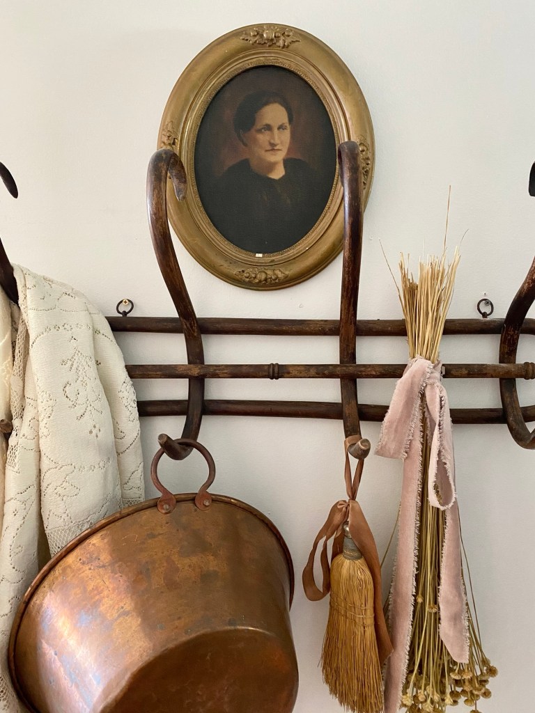 When I saw this painting, it reminded me of my Great Grandma Edwards! Do you see the resemblance? 🤍 #antiquepainting #greatgrandma #resemblance #doyouseeit #family #loveher #handmedowncottage #furnitureattiffanys