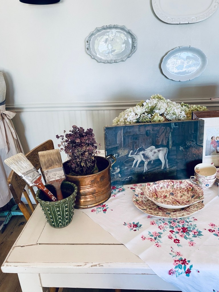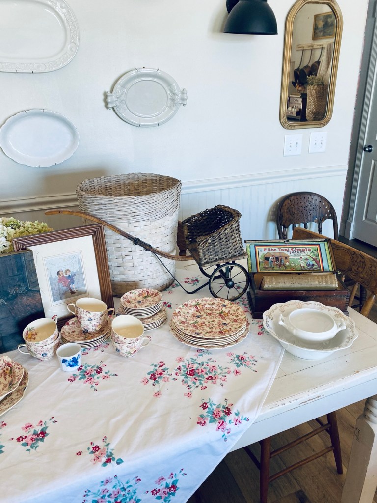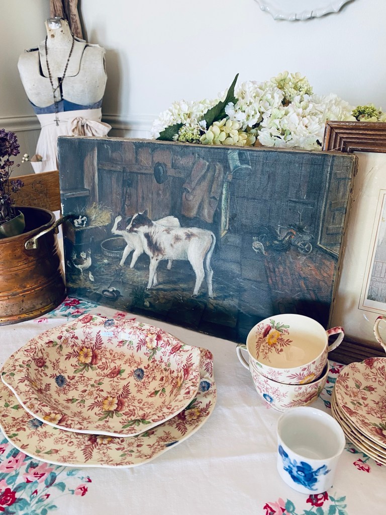 Today’s finds 🩷 What would be your fav? It’s a tie for me between the antique painting… thank you @simplysheridans And the antique babydoll wagon… thank you @fairyhousebook #thrifted #found #antique #vintage #vintagedishes #englishcottagestyle #ironstone #deseretindustries #copper #art #handmedowncottage #furnitureattiffanys