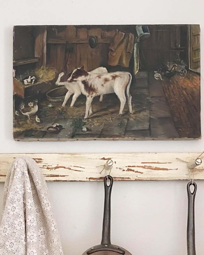 My sweet antique painting I purchased from @simplysheridans #loveit #antiquepainting #cows #farmhouse #old #styled #thankyou #handmedowncottage #furnitureattiffanys