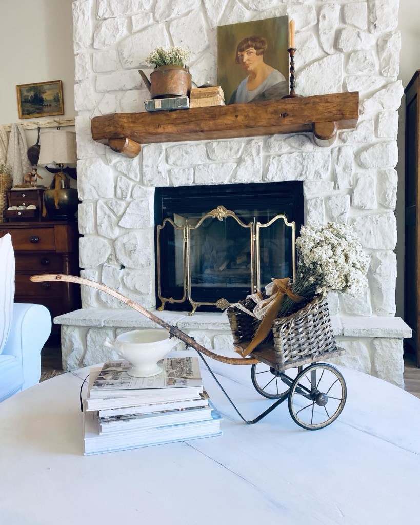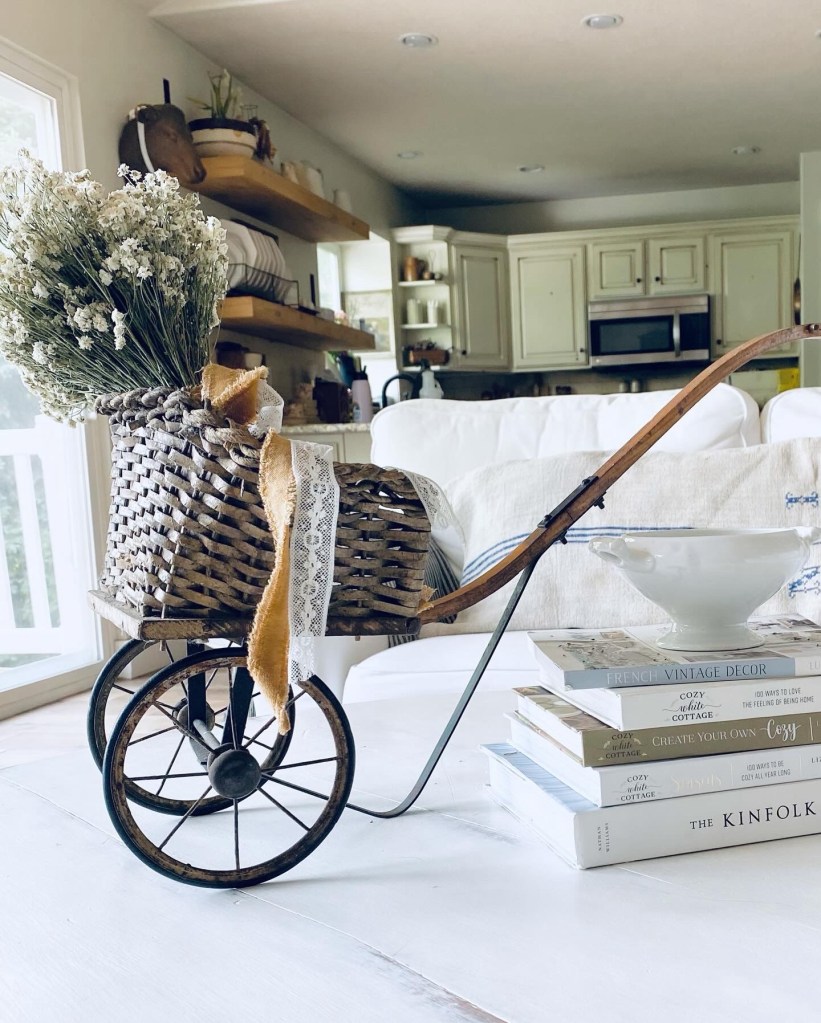 My little doll wagon styled 🤍 #styled #dollwagon #antique #coffeetabledecor #isntitsweet #old #handmedowncottage #furnitureattiffanys