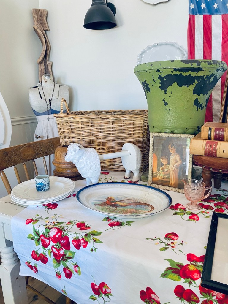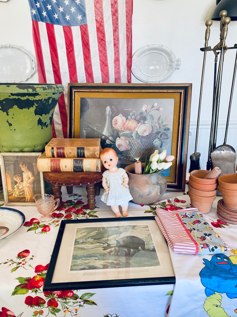 Today’s thrifty finds… what would be your fav? I adore the antique leather books 🤍 And sorry… the 1970’s McDonald’s pillowcase is already spoken for 😂🤍 #deseretindustries #thrifting #thriftstorefinds #tuesday #vintage #antiquebooks #art #ironstone #brass #olddoll #basket #handmedowncottage #furnitureattiffanys #vintagemcdonalds