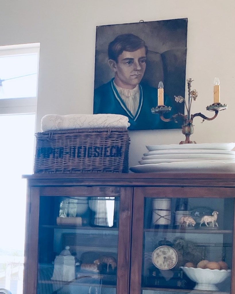 I hung one of the portrait paintings I found at the estate sale I went to yesterday… What should we name him? 💙💙 #portraitpainting #name #vintage #estatesalefinds #homedecor #happysaturday #handmedowncottage #furnitureattiffanys