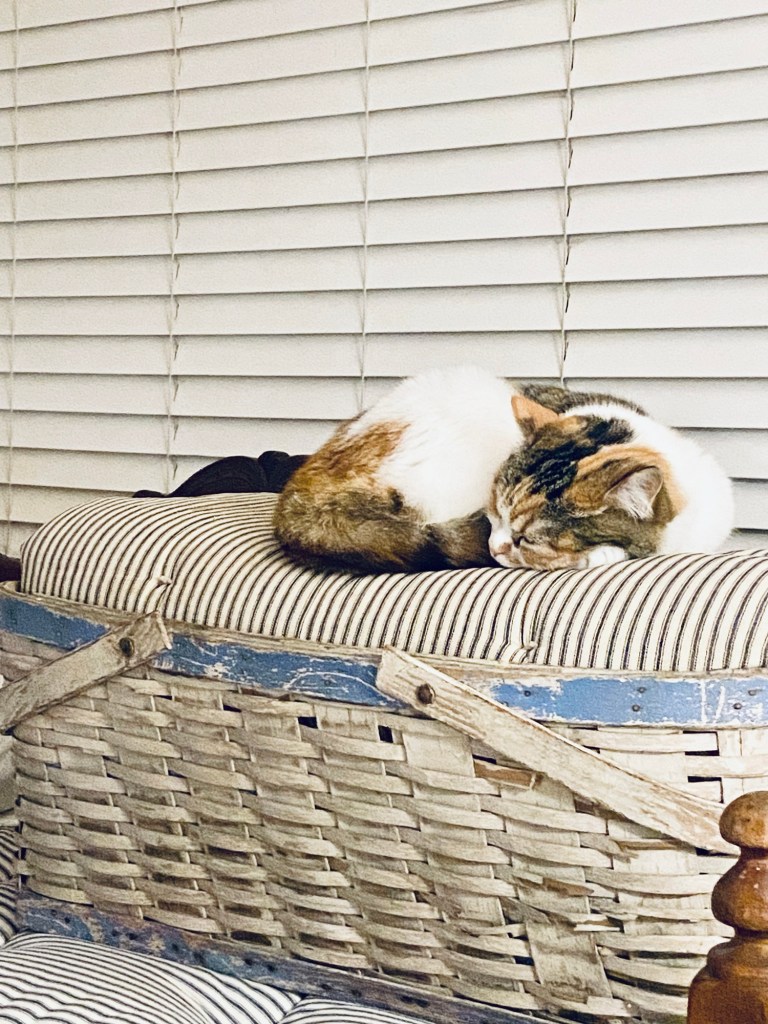 It was so dark this morning when the alarm went off… the days are getting shorter and Stevie is not impressed 🤍 Me either girl #steviethegirlkitty #cats #early #fall #shorterdays #darkmornings #catsofinstagram #happywednesday #handmedowncottage #furnitureattiffanys