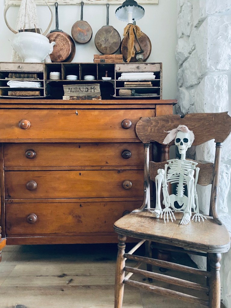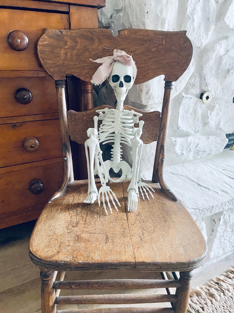 One little Halloween gal is out… I’m sure more decor will follow shortly 🧡💀👻 #halloween #halloweendecor #skeleton #itsstillseptember #happyfriday #handmedowncottage #furnitureattiffanys #vintage #homedecor