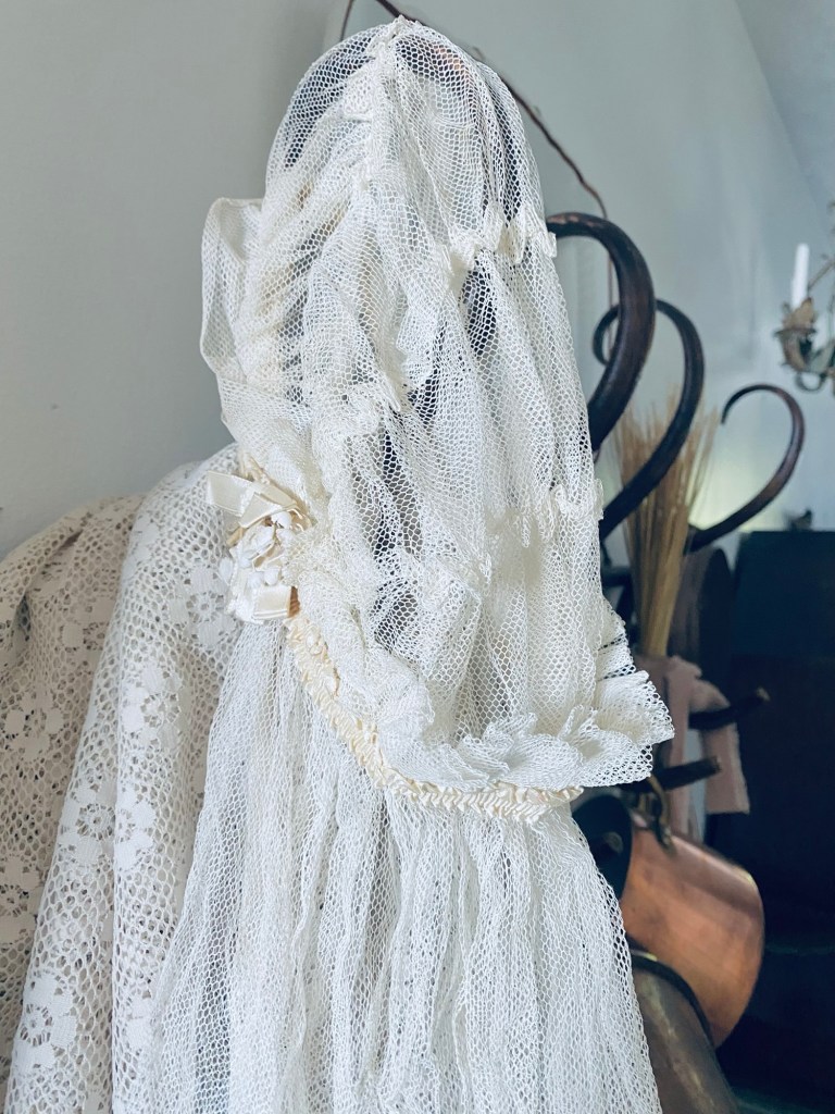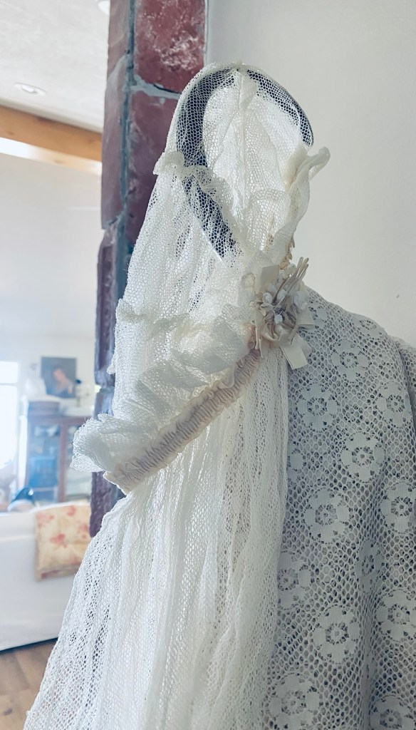 I found this lovely antique communion veil on #marketplace and I am smitten 🤍 It’s so sweet #communionveil #antiques #lace #furnitureattiffanys #handmedowncottage #vintage #antique #antiquecommunionveil
