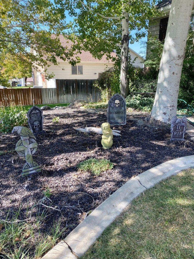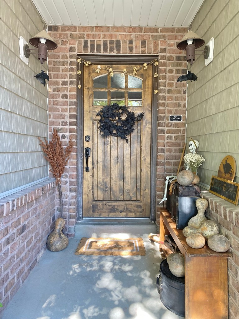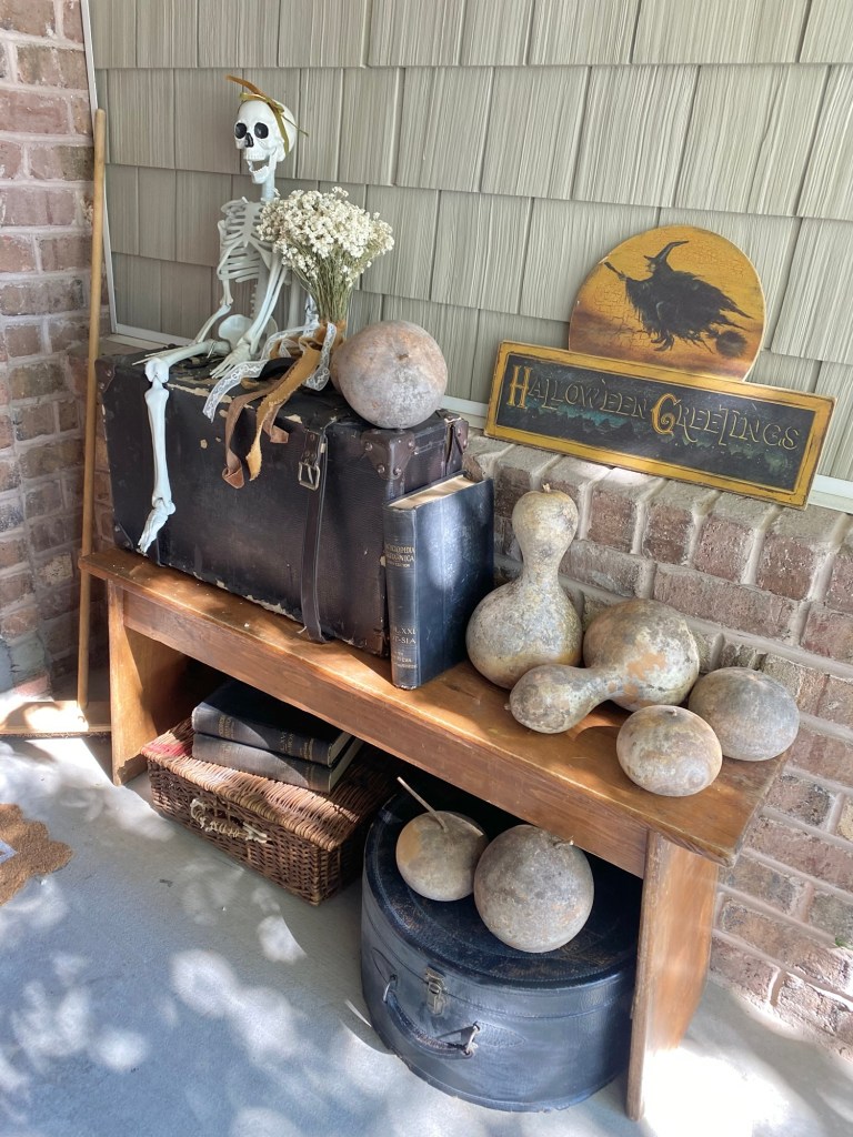 Porch and front yard π€π¦πππ§π»ββοΈ#halloween #halloweendecor #halloweenyard #graveyard #skeleton #oldsuitcase #happyhalloween #handmedowncottage #furnitureattiffanys #homedecor #antique #vintage #vintagehalloween