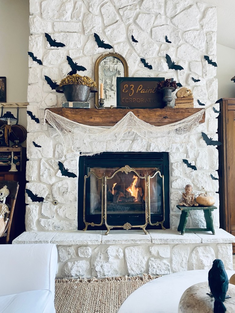 Our first fire of the season π€ππ€π Happy Sunday #fireplace #furnitureattiffanys #handmedowncottage #vintage #homedecor #antique #halloweendecor #fireplacedecor #paintedfireplace #fall #itscold #utah #happysunday