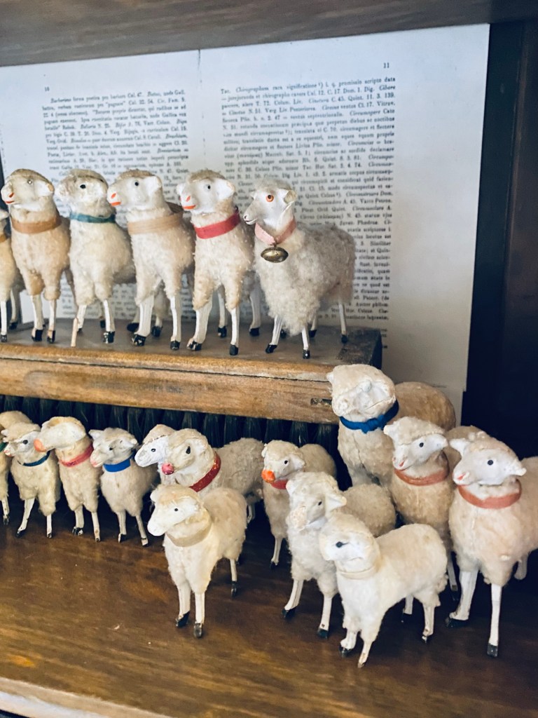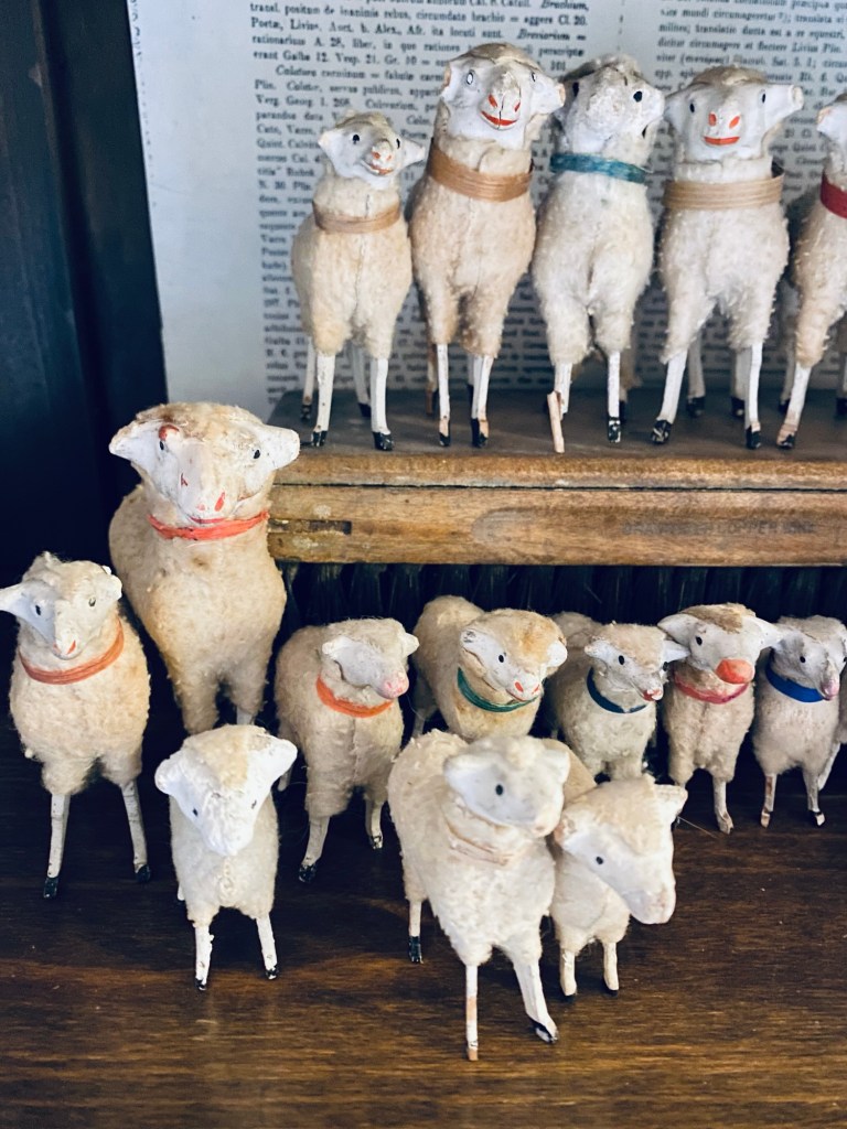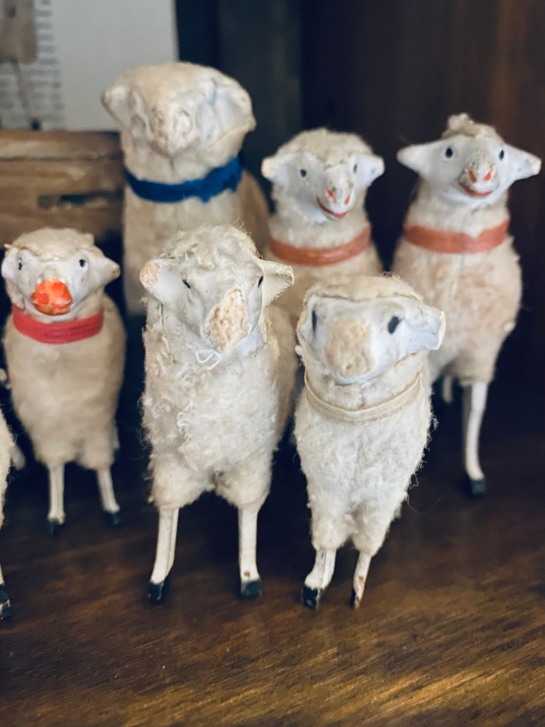 I put my #putz sheep collection away for Halloween… So happy to have them out again ❤️❤️❤️ I’m up to 25 in the family! My favorites are the little loved on pug nosed ones ❤️ #putzsheep #lovethem #collection #sheep #antique #german #pugnose #playedwith #loved #imperfect #furnitureattiffanys #handmedowncottage #vintage #homedecor #ironstone