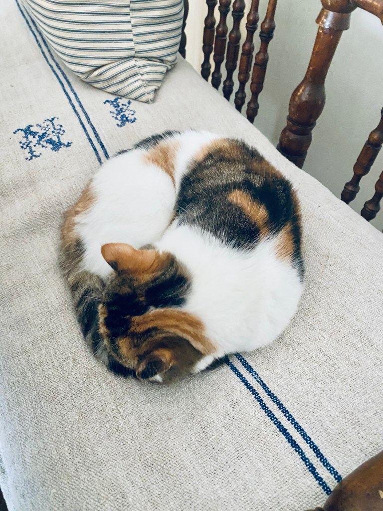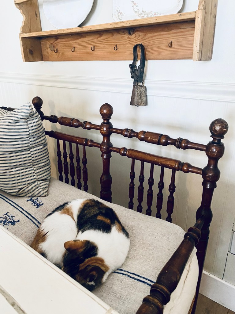 Happy Wednesday friends 🤍 I found this sweet antique farm animal bell on #marketplace last week. I’m loving it! I can’t help but think of the adventure it has been through 🤍 And on a different note… we’ve been out of town for a few days. I think #steviethegirlkitty is happy we’re home 🤍 #furnitureattiffanys #handmedowncottage #vintage #homedecor #farm #farmlife #farmhousedecor #antique #cats #antiqueanimalbell