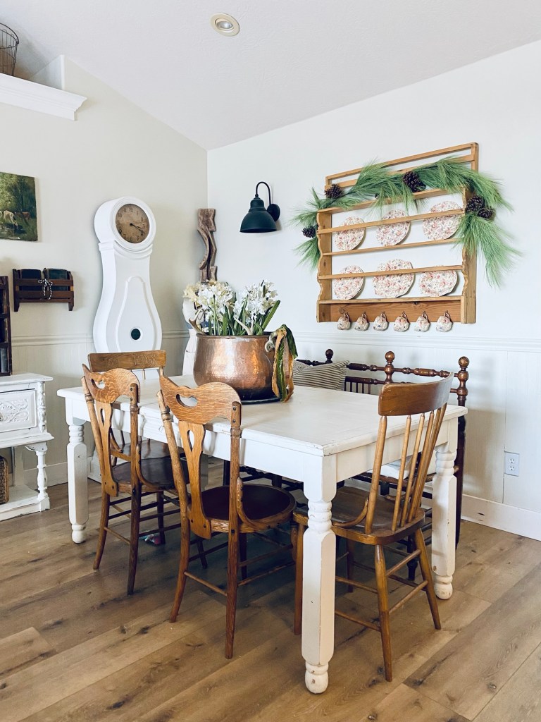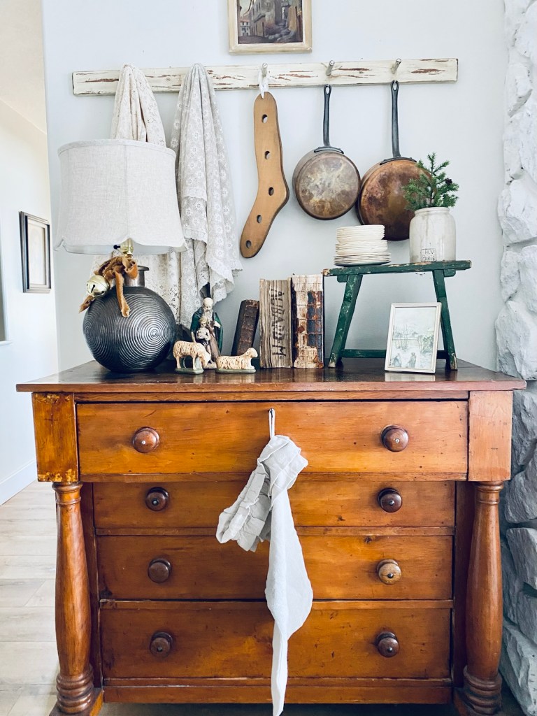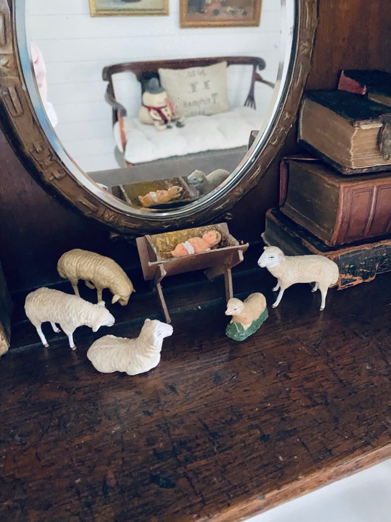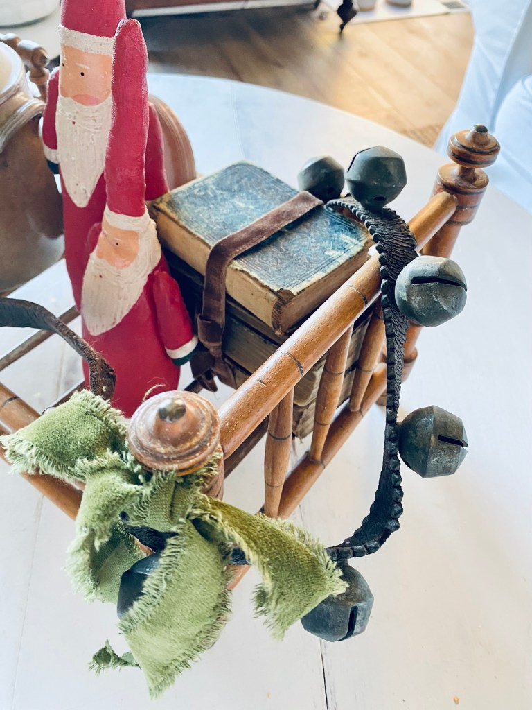 Christmas decor 2024 ❤️ I really layered this year… added bows, added pops of red and evergreens to my decor. My new additions this year are the antique sleigh bells and the antique French doll bed… you can see them in the first couple of pictures ❤️🎅🏻 #christmasdecor #vintagechristmas #antiques #furnitureattiffanys #handmedowncottage #vintage #homedecor #thriftstorefinds #art #ironstone