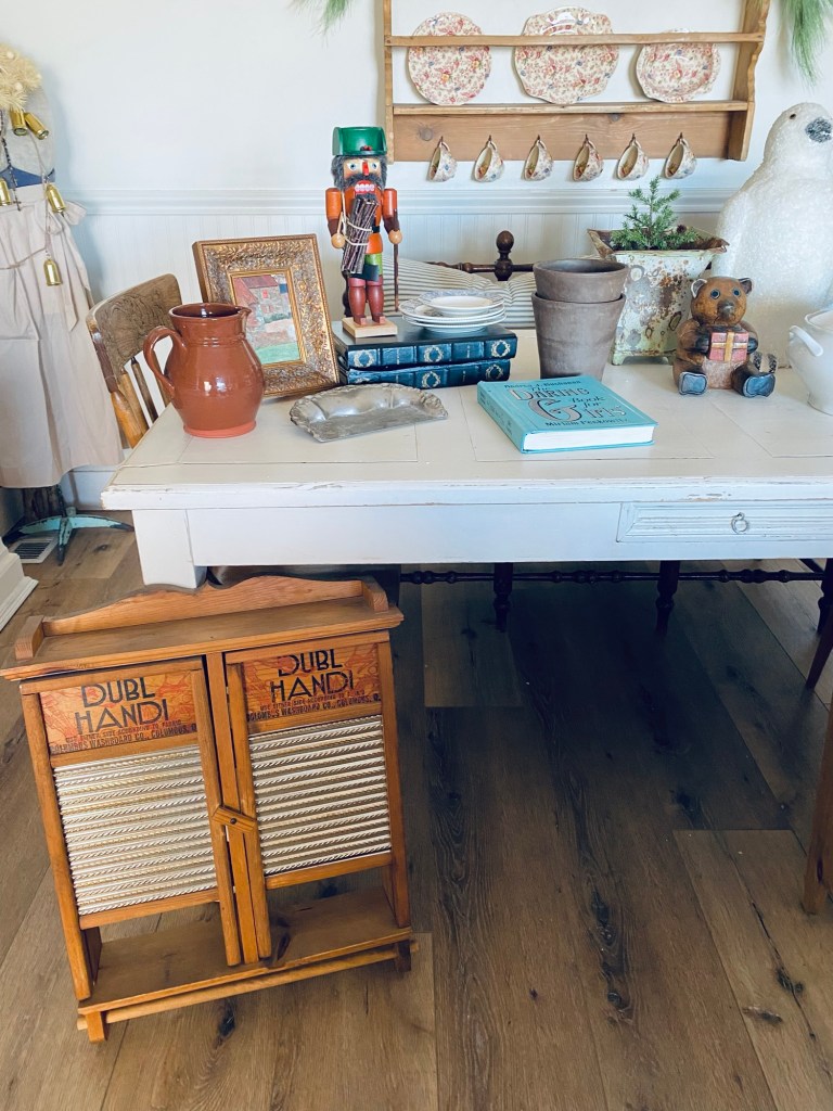 Today’s finds ❤️ What would be your fav? Mine is a tie between the leather briefcase and the nutcracker ❤️❤️ #nutcraker #german #furnitureattiffanys #handmedowncottage #vintage #homedecor #antique #thriftstorefinds #deseretindustries #thriftstorefinds #thrifting