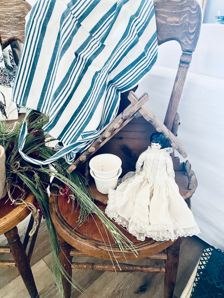 Todays finds ❤️ What would be your fav? I love the antique doll!! #furnitureattiffanys #handmedowncottage #vintage #homedecor #antique #thriftstorefinds #thrifting #thriftstorefinds #ironstone #christmasdecor