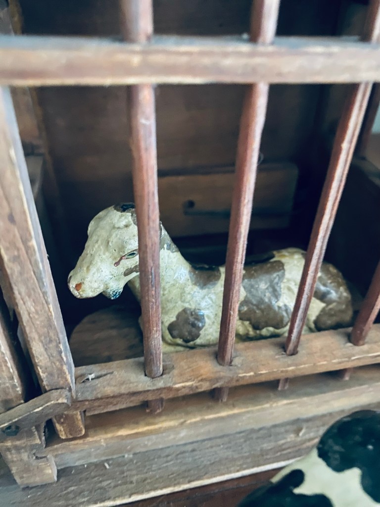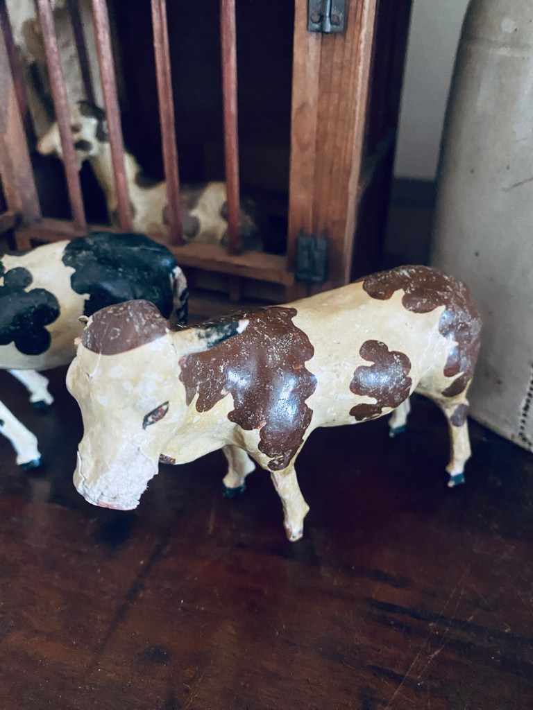 Sharing my most recent find 🤍 Putz goat and 2 cows! They came with the amazing wooden barn 🤍 Merry Christmas Eve Eve! #cows #putz #antique #furnitureattiffanys #handmedowncottage #vintage #homedecor #animals #farmhousedecor