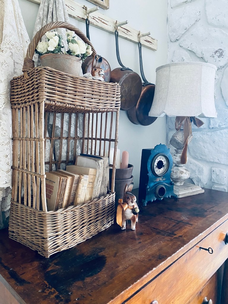 I know it’s the day after Christmas… but I’m bring the bunnies out 🐇🐇 Are you a leave the decor up until after the new year… or pull it down the day after Christmas like I am? #furnitureattiffanys #handmedowncottage #vintage #homedecor #antique #thriftstorefinds #bunnies #bunny #german