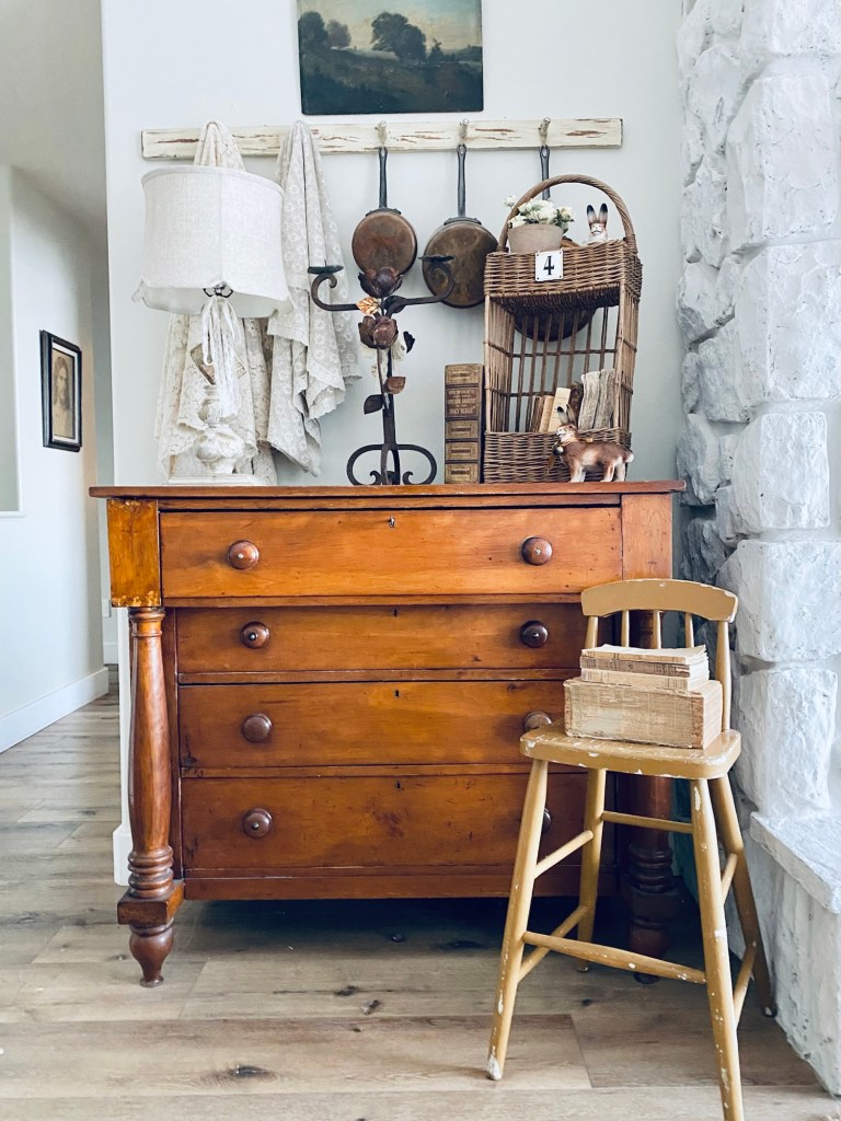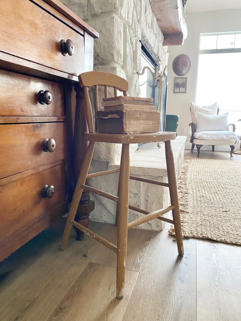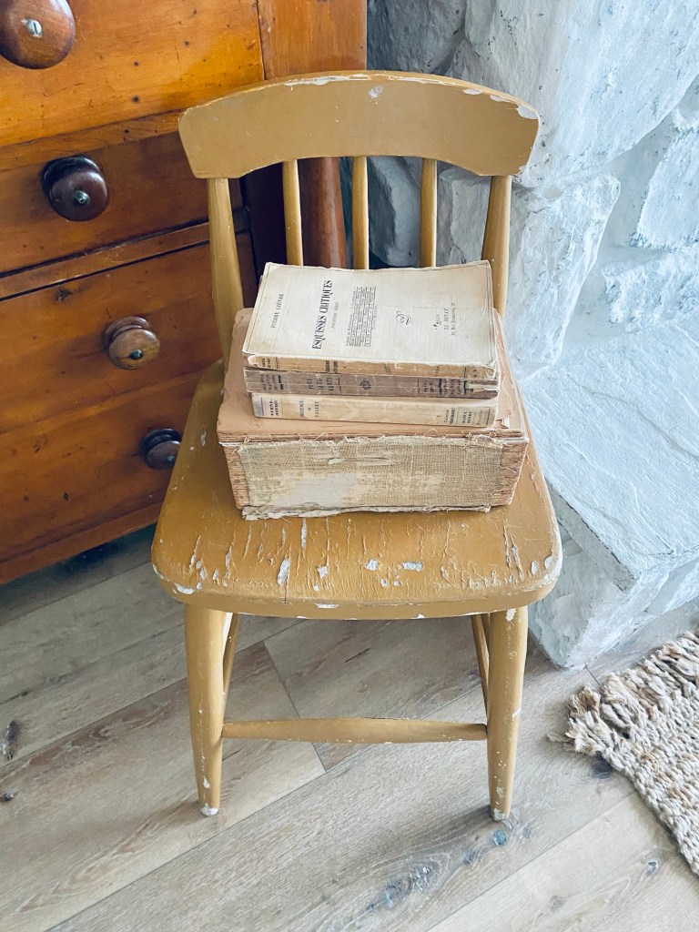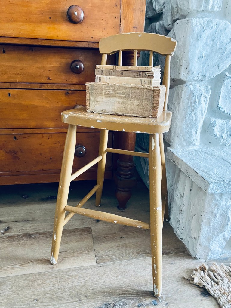 I thrifted this little chair yesterday… the size, shape and chippy paint spoke to me 🤍 #furnitureattiffanys #handmedowncottage #homedecor #chair #vintage #thriftstorefinds #thrifting #styled #oldchair #chippy #chippypaint