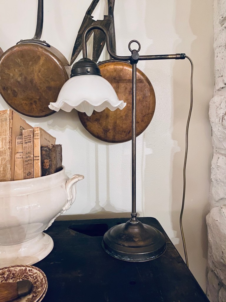 I bought this antique French lamp about 6 weeks ago… isn’t she lovely? Some things are worth the wait 🤍 And how darling is this French antique birdcage I bought from @annaseuropeanantiques Seriously so sweet 🤍 #furnitureattiffanys #handmedowncottage #vintage #homedecor #antique #french #antiquelamp #antiquebirdcage #funfinds