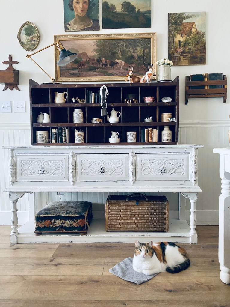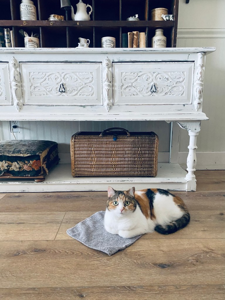 I must’ve dropped a rag while hauling the laundry… #steviethegirlkitty thinks it’s hers now ☺️ #furnitureattiffanys #handmedowncottage #cats #catsofinstagram #sillycat #thethingscatsdo