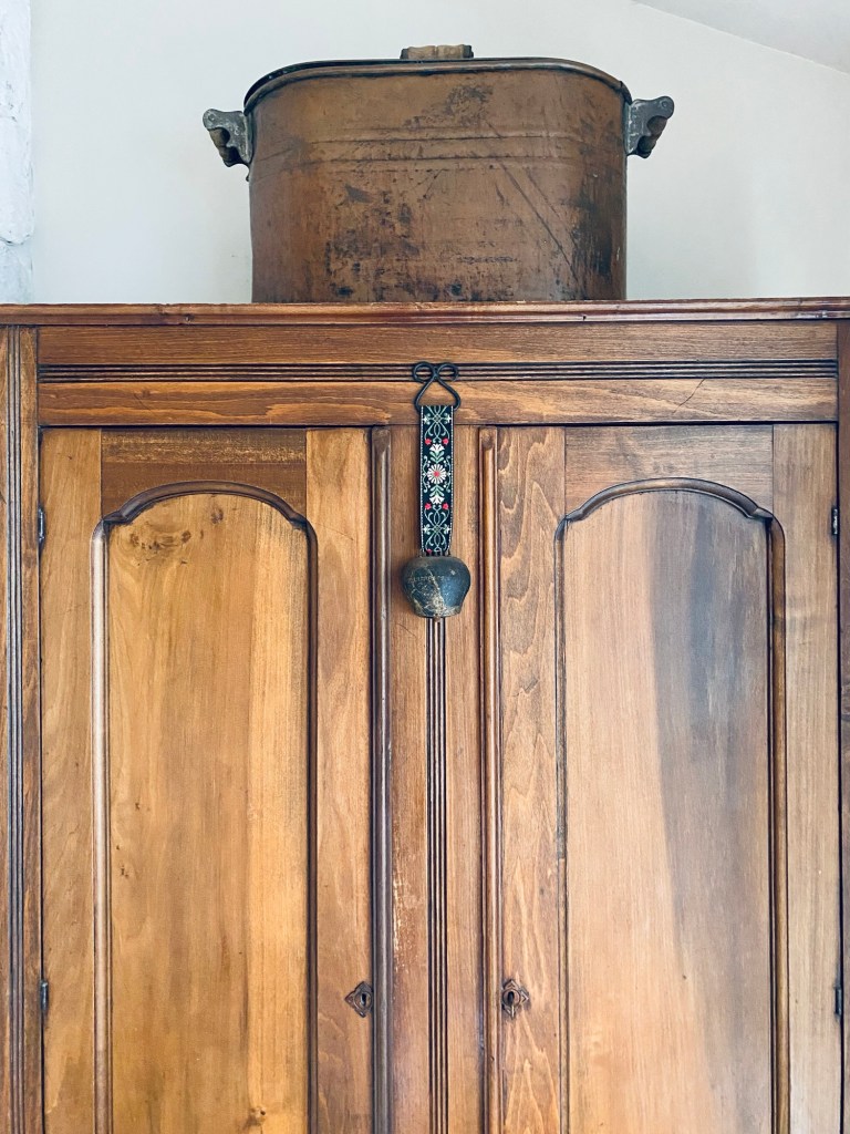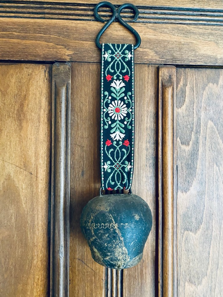 I found this gorgeous antique German oxen bell on #marketplace a week or so ago… I fell in love with it ❤️❤️❤️ The colors on the strap, the scratches and pitting in the bell and the deep ring it makes ❤️ who would’ve thought I needed this in my life haha! #furnitureattiffanys #handmedowncottage #antique #homedecor #antiquebell #oxen #german