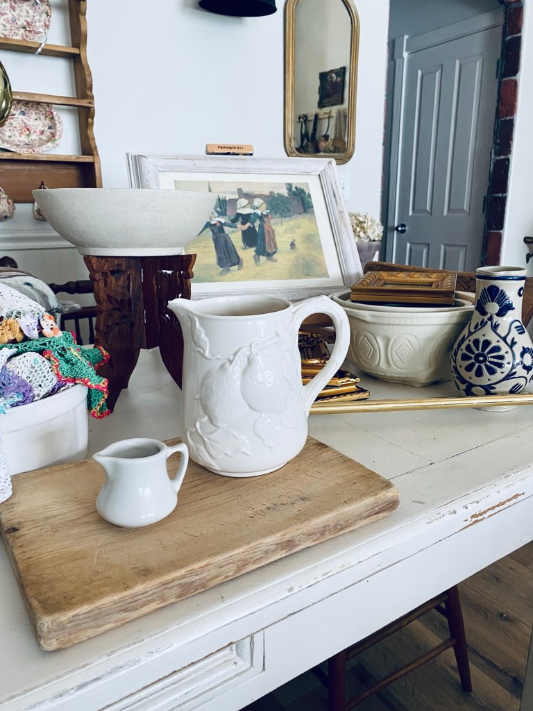 It’s been a while since I’ve been thrifting! Here’s my haul from today 🤍 All thrifted with the exception of the bunny and the chippy wooden caddy, thanks Lisa @bramblesandblossomsprovo What would be your fav? I love the Easter bunny 🤍 #furnitureattiffanys #handmedowncottage #homedecor #vintage #antique #thriftstorefinds #thrifting #art #deseretindustries #ironstone