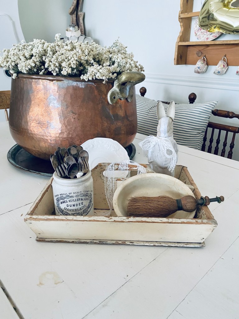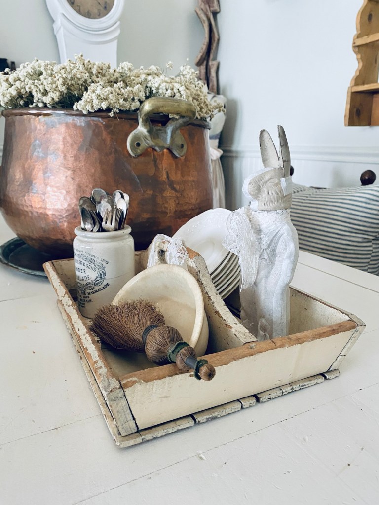 Here are my finds from @bramblesandblossomsprovo styled 🤍 Happy Friday! #furnitureattiffanys #handmedowncottage #homedecor #vintage #antique #ironstone #myfavoriteshop #bunny #german