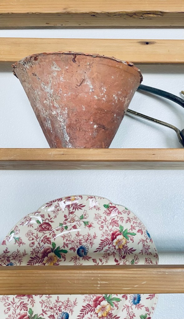 Happy March ☘️ I’m dreaming of Spring… anyone else? I thought I’d share my little french antique sap pot today 🪴 Have a wonderful Saturday friends! #furnitureattiffanys #handmedowncottage #homedecor #antique #sappot #french #spring #march #platerack #plates #styled #copper #pine #happy