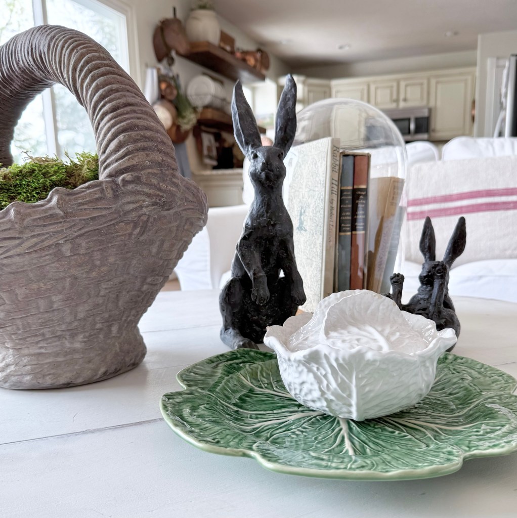 Happy Thursday 🐇🤍 We got snow again today… I’m seriously over it ha! #snow #springinutah #overit #timeforsun #bunnies #easter #bunnybooks #cloche #handmedowncottage #furnitureattiffanys