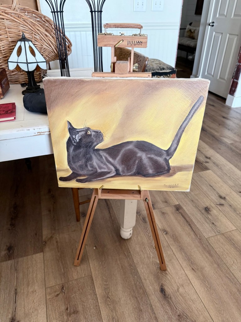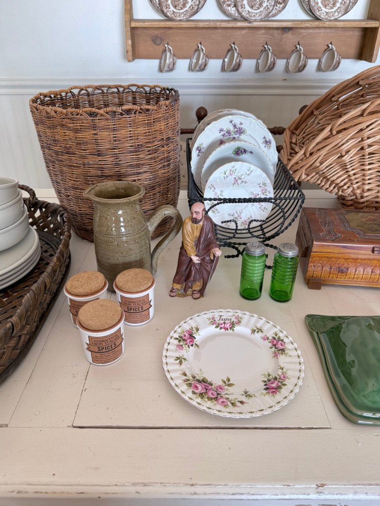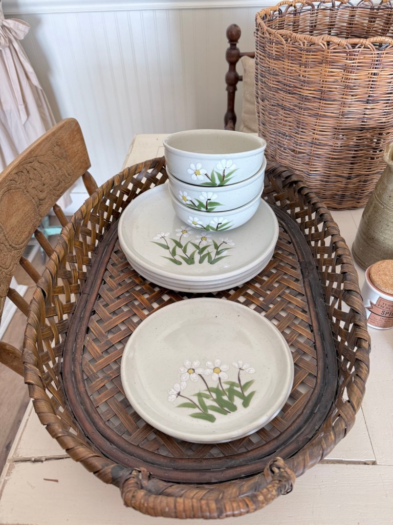 Todays finds 🤍 what would be your fav? Mine is the cat painting from 1971 🤍 Let me know if you see anything you can’t live without! #thrifting #furnitureattiffanys #handmedowncottage #homedecor #vintage #thriftstorefinds #catpainting #vintagedishes #baskets #art #michealkors