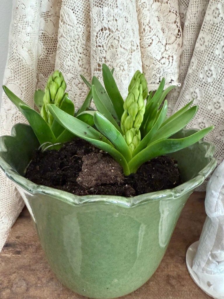 I picked up a couple #hyacinths at #walmart today 🪻🤍 They are my fav flower… well besides pansies! I can’t wait for them to bloom and smell like heaven #furnitureattiffanys #handmedowncottage #spring #theysmellsogood #favorite
