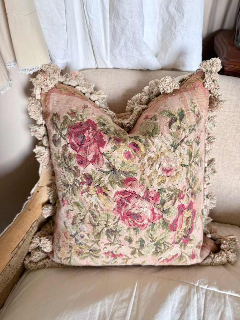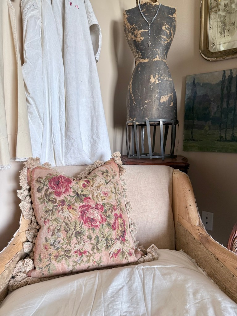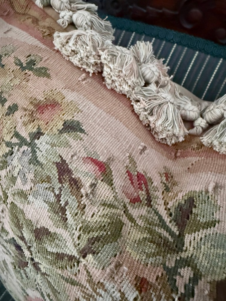 A closer look at the gorgeous pillows I got yesterday 🤍🤍🤍 I can’t get over how lovely they are… #furnitureattiffanys #handmedowncottage #homedecor #vintage #antique #pillows #french #old #lovely