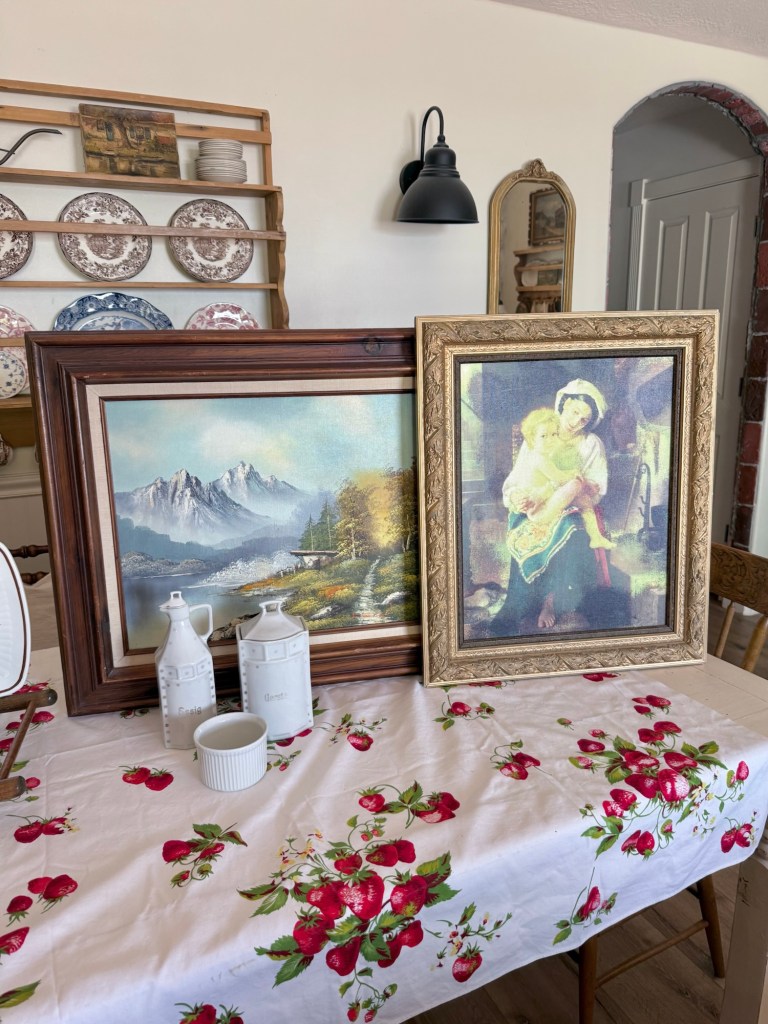 Today’s small haul… what would be your fav? Im loving the antique wooden camp chair turned plate rack 🤍 #furnitureattiffanys #handmedowncottage #homedecor #vintage #antique #thriftstorefinds #art #thrifting #ironstone