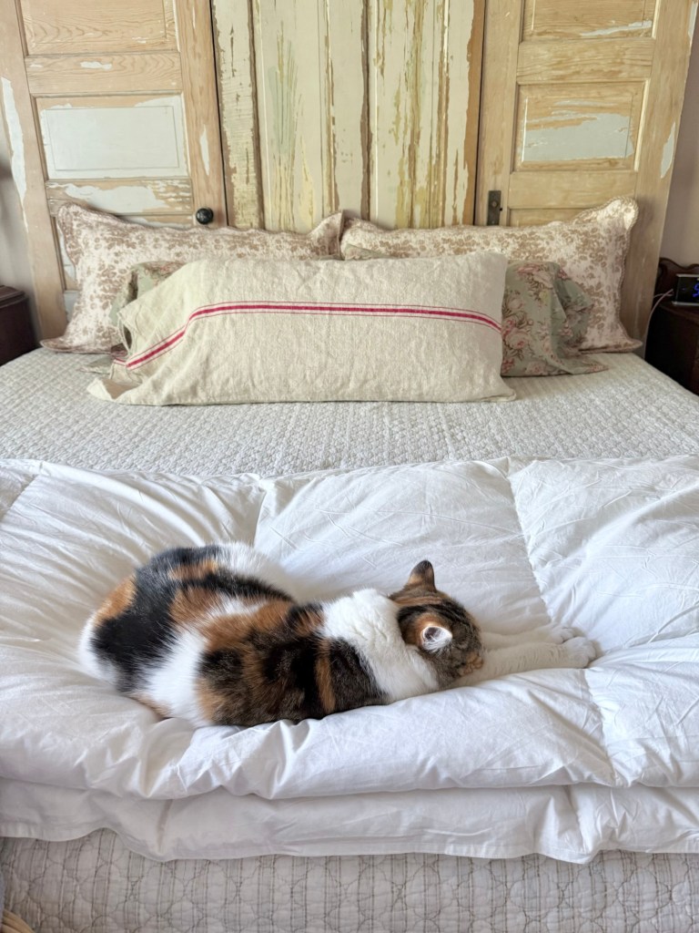 Happy Wednesday 🤍 #furnitureattiffanys #handmedowncottage #steviethegirlkitty #cats #sleepy #morningnap #cats_of_instagram