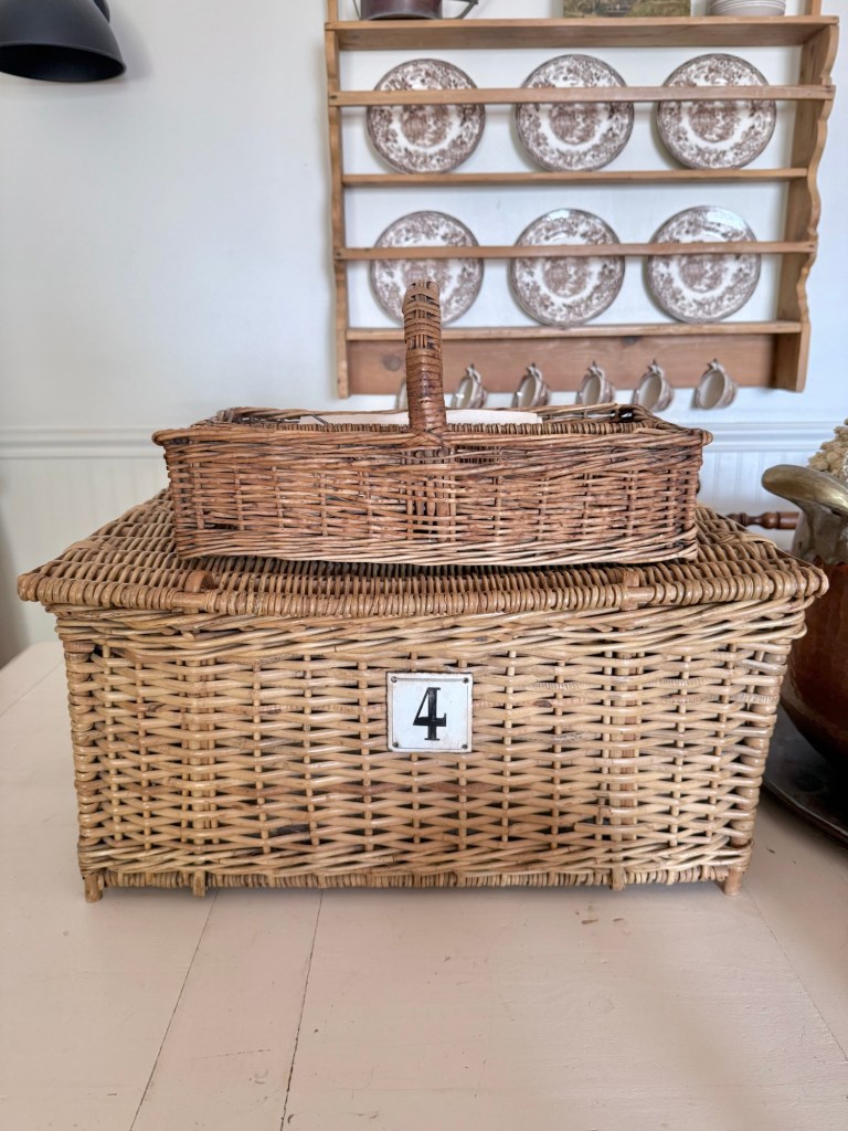 I have a weakness for old baskets 🤍 Here are some of my favorites! Do you collect baskets? #furnitureattiffanys #handmedowncottage #homedecor #vintage #antique #basket #collection #frenchbaskets