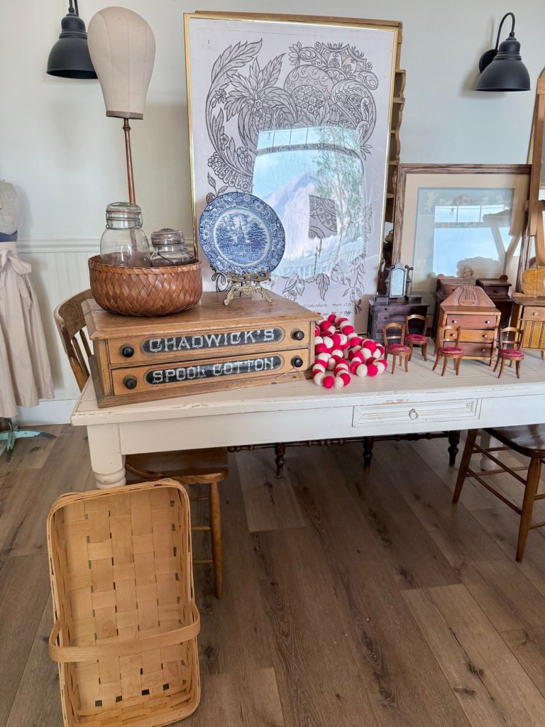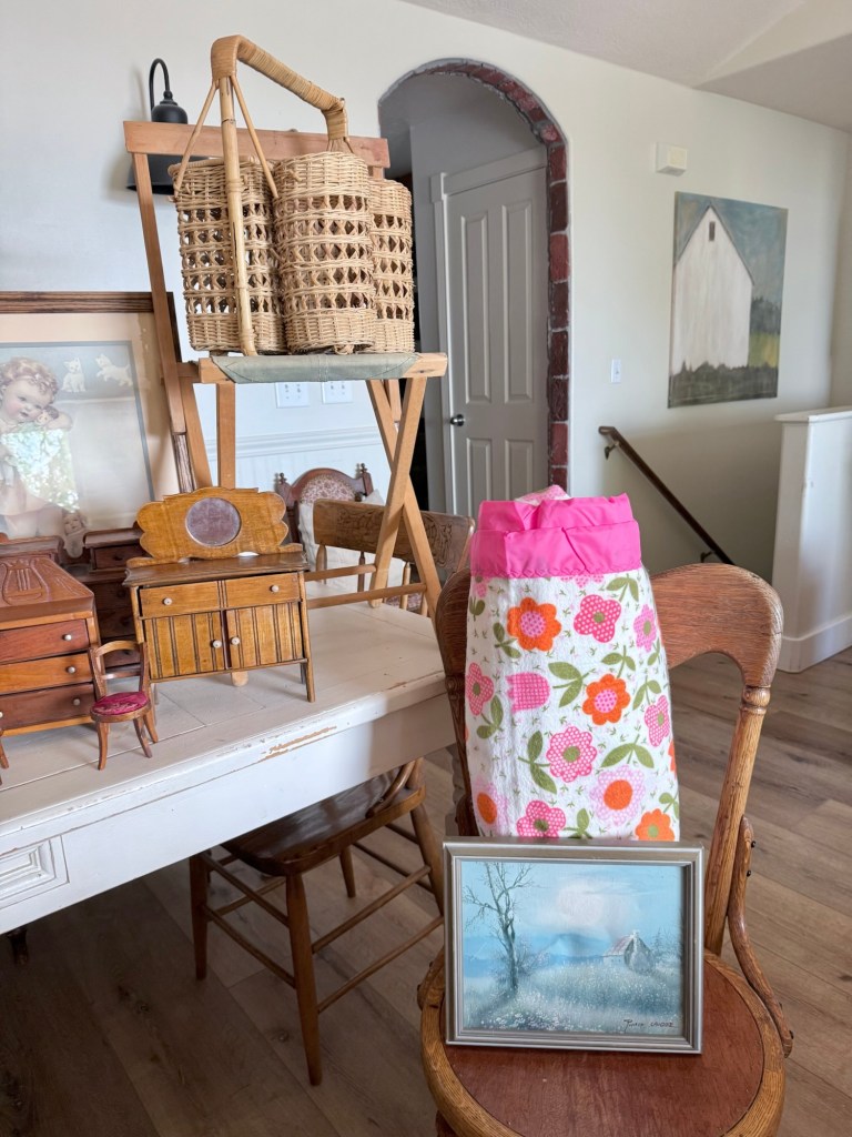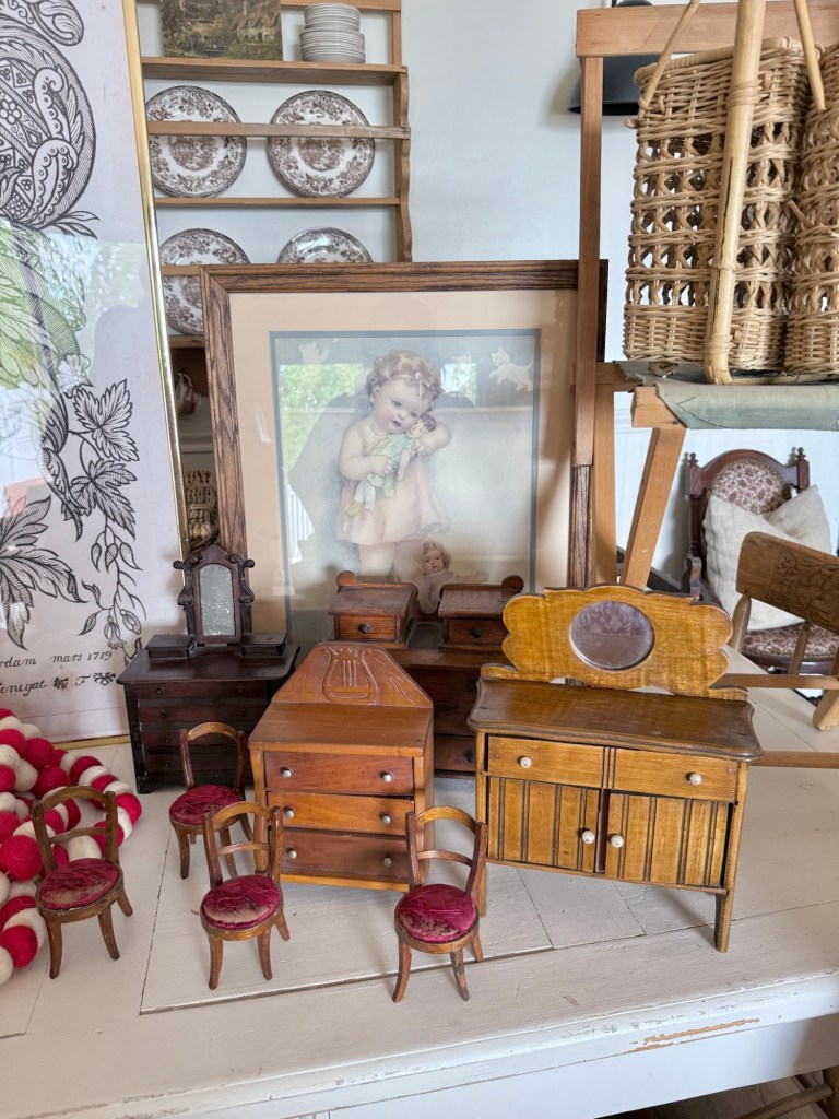 Today’s finds ❤️ What would be your fav? I adore the antique doll furniture and the spool cabinet ❤️ #furnitureattiffanys #handmedowncottage #homedecor #antique #vintage #thriftstorefinds #antiquestorefinds #art