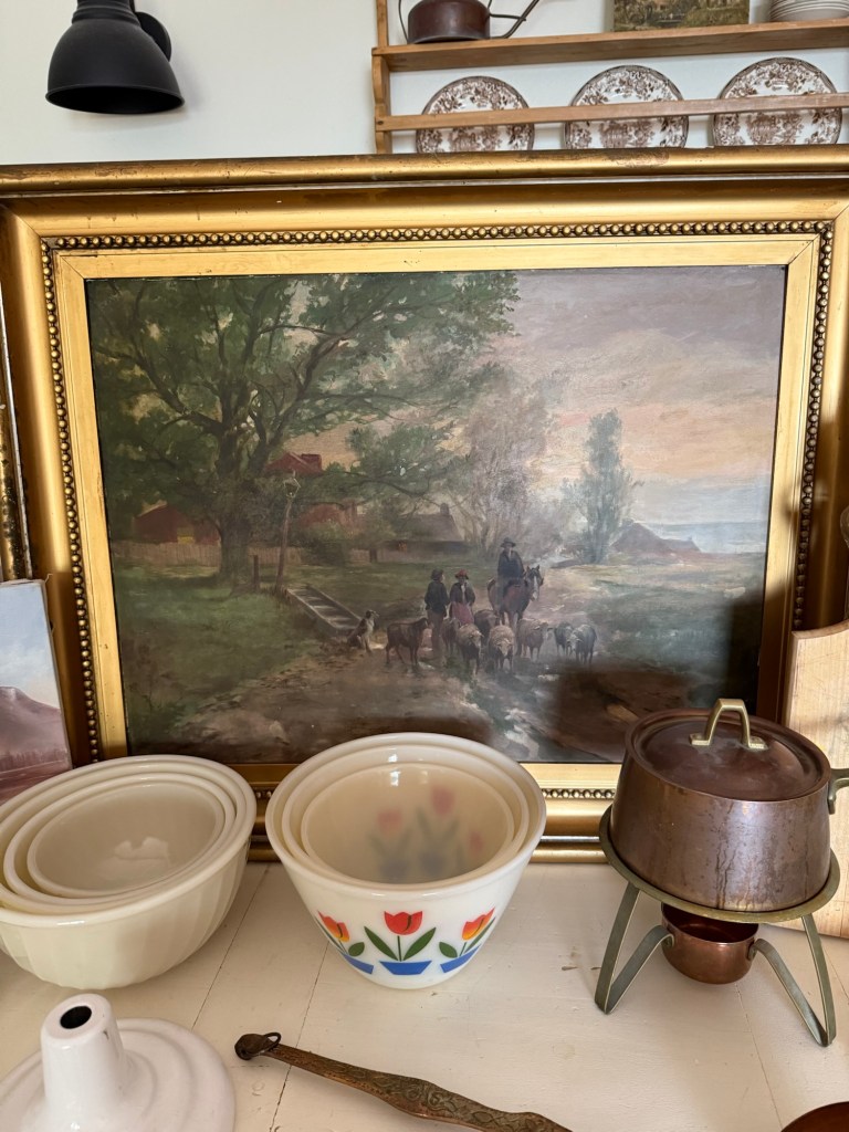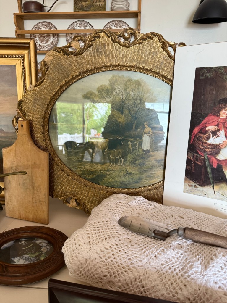 Today’s treasures ❤️ What would be your fav? I adore all the art pieces!!! #furnitureattiffanys #handmedowncottage #homedecor #vintage #antique #thriftstorefinds #antiquestorefinds #art #paintings #farmhouse #map #france #antiquefurniture