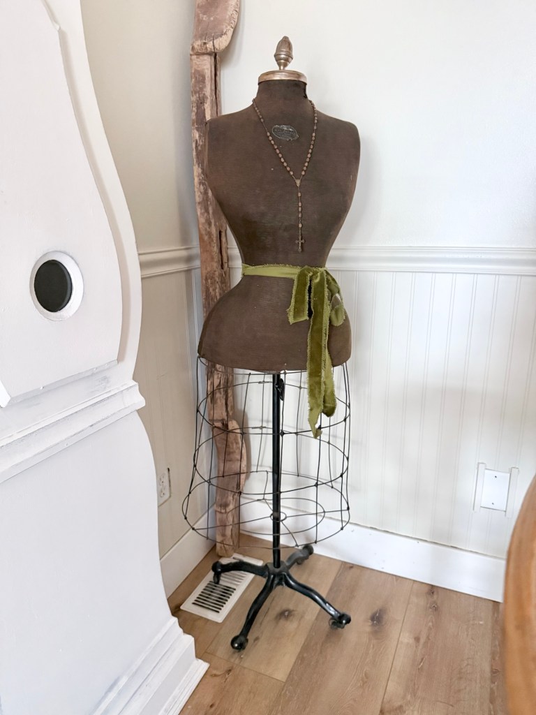 This antique mannequin I got yesterday is the queen of all mannequins 🩷 She’s old, has a wasp waist, has her cage dress, she’s made in New York and she’s all original! Can it get any better than that? I can’t wait to dress her up for Halloween 🧙🏻 Any suggestions on a name for her? #furnitureattiffanys #handmedowncottage #antique #dressmannequin #waspwaist #newyork #isntshelovely