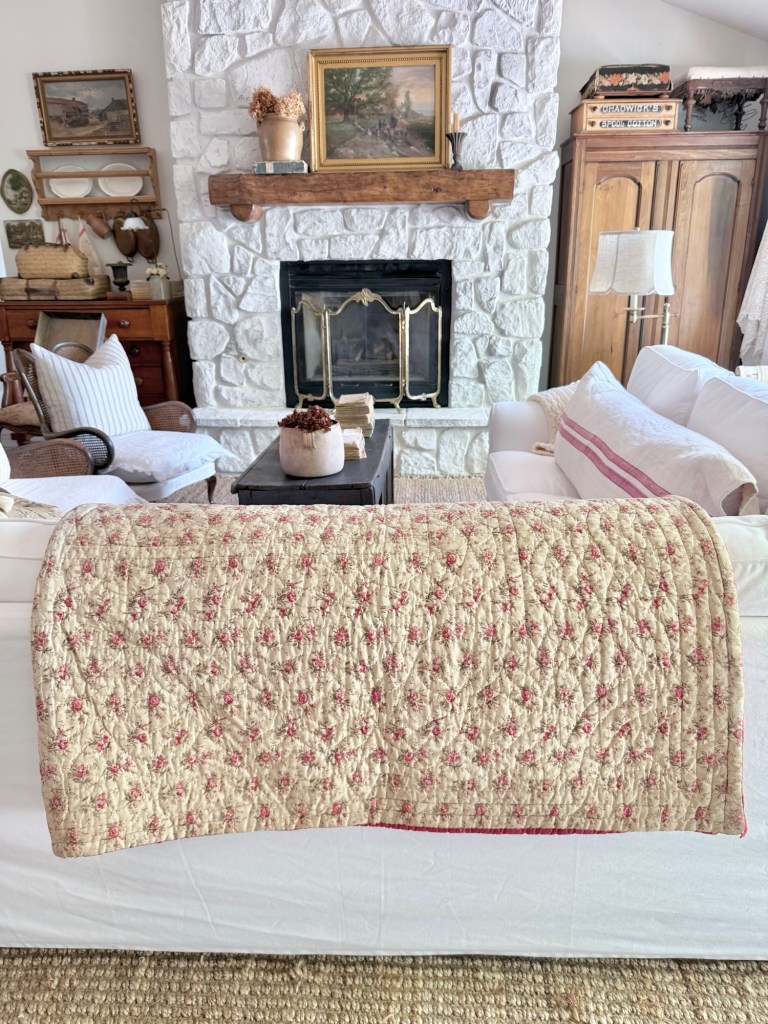 I found the sweetest antique quilt yesterday @lapetitemaison.ut ❤️ Isn’t she a beauty? #furnitureattiffanys #handmedowncottage #homedecor #antique #antiquequilt #flowers #floral #quilt #antiquing #styled